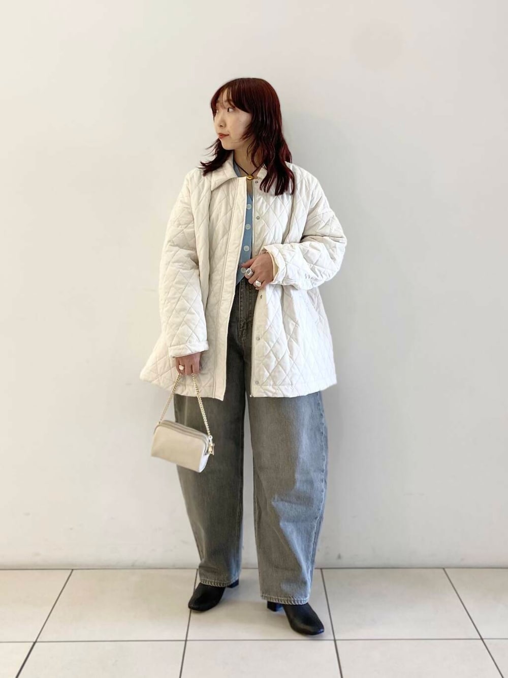 カーブデニムとゆるく合わせましたが、タイトスカートやワイドパンツなどと合わせるのもお勧めです◎