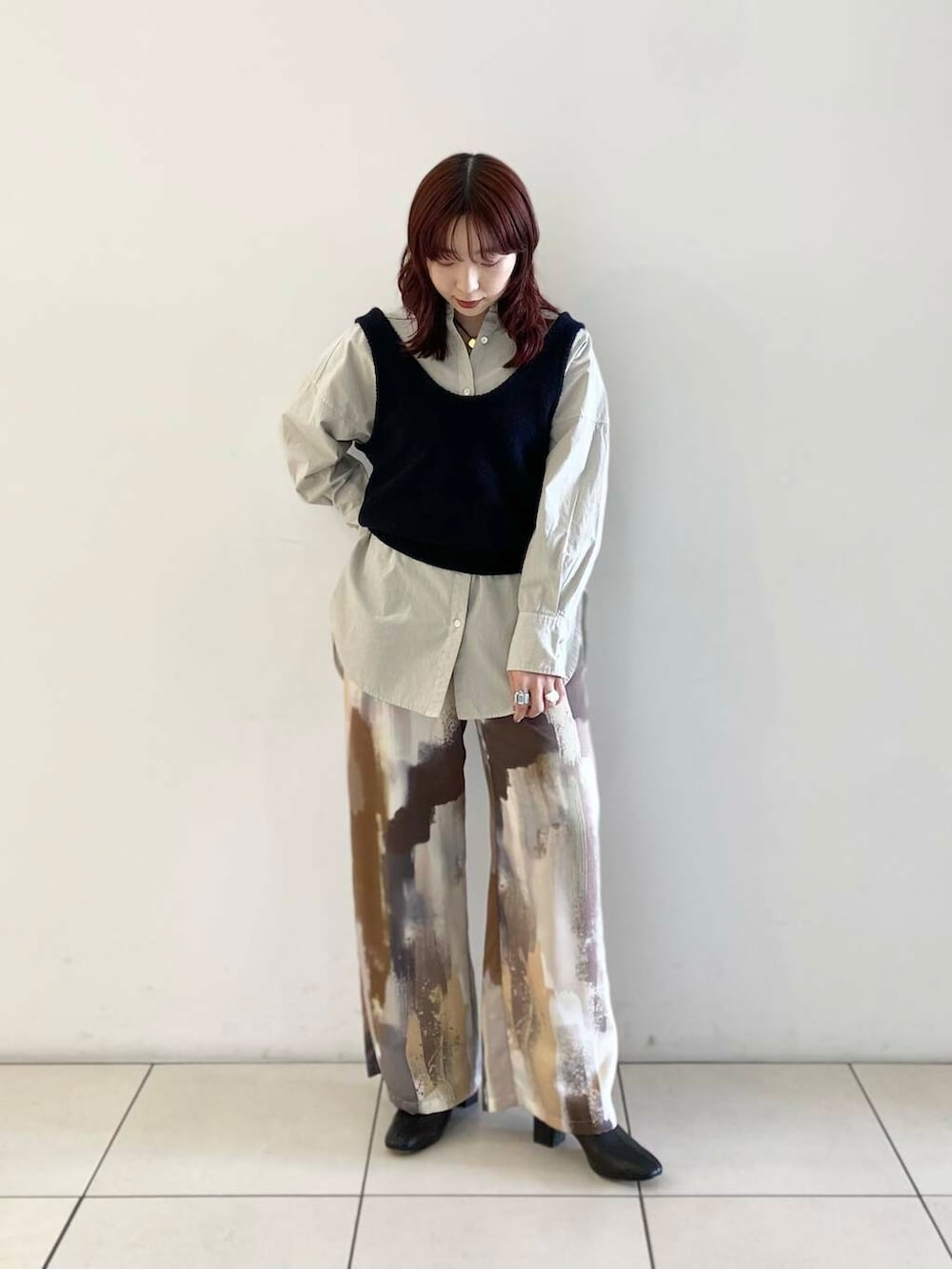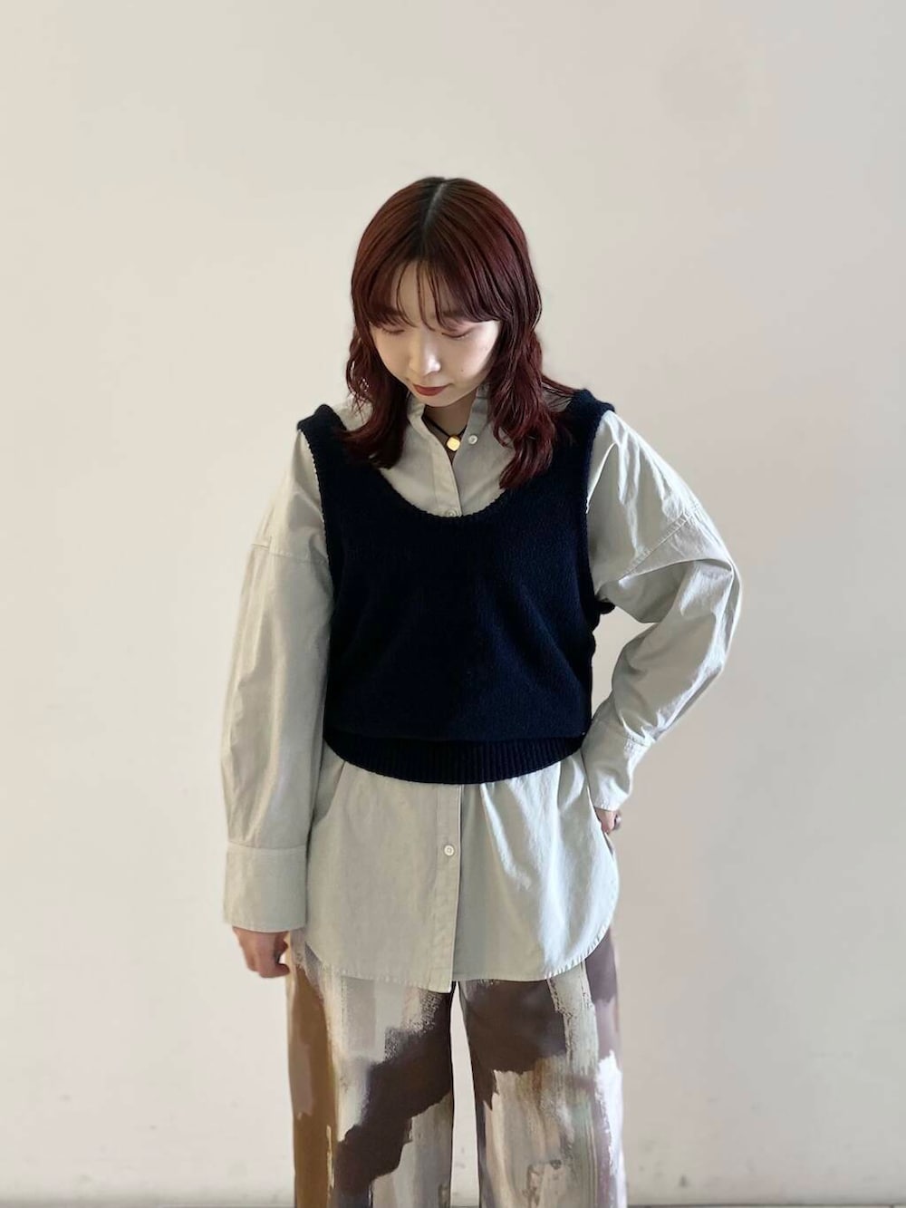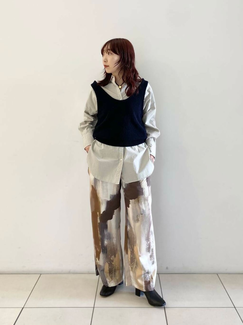 オーバーサイズなのでベストをレイヤードしてポイントにしました◎