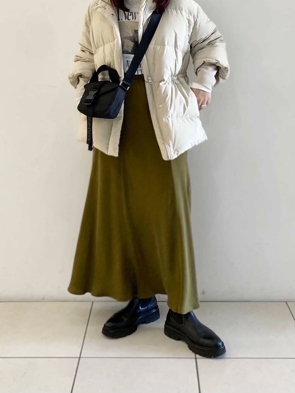 スカートには珍しいオリーブカラーで、スタイリングのポイントになってくれます◎