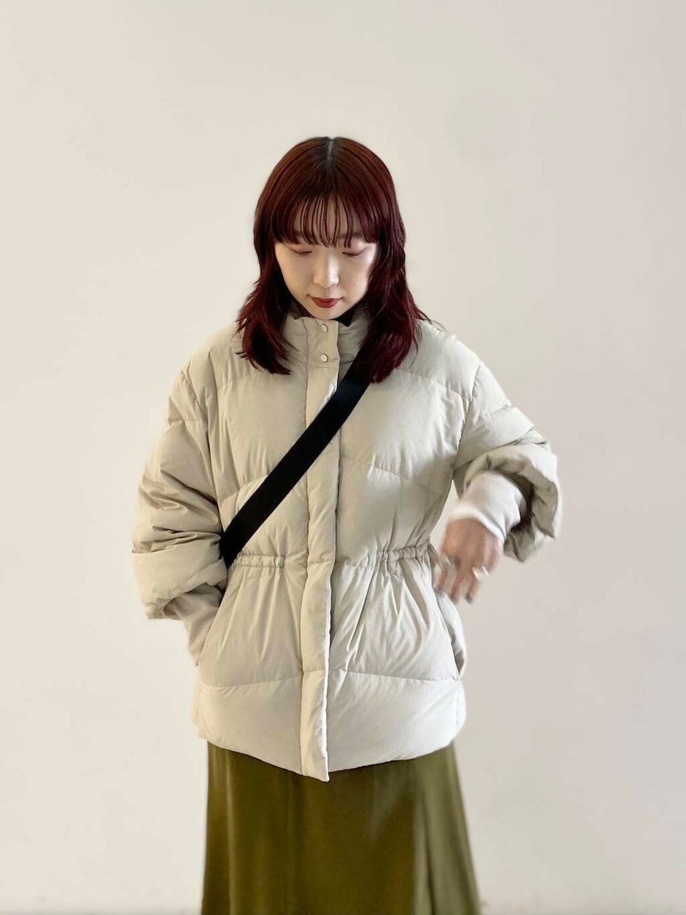 お尻は隠れる丁度良い丈感で、ウエストを絞ってシルエット調節もして頂けます◎
