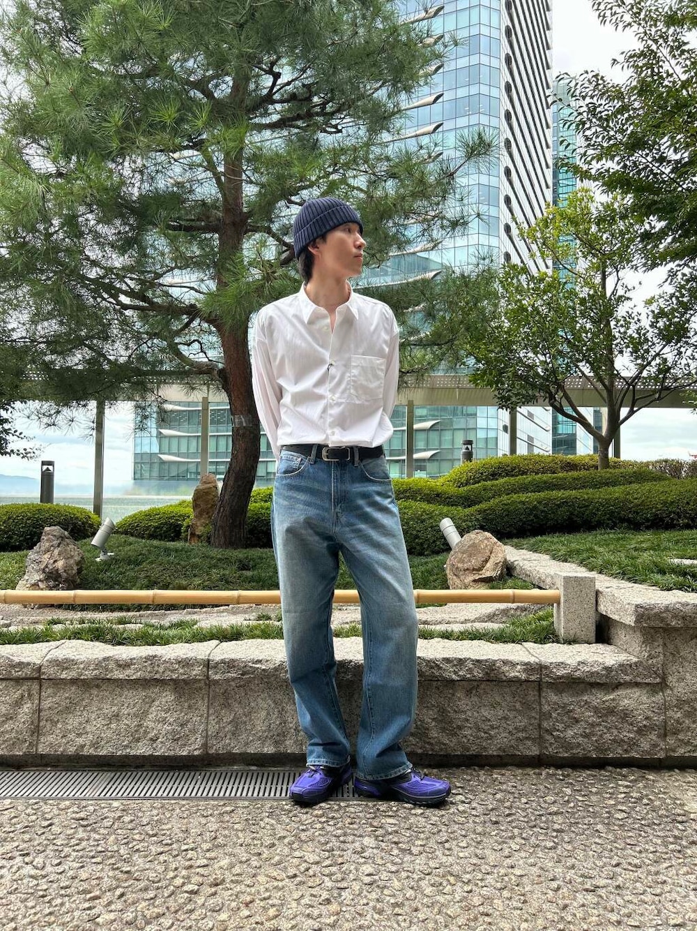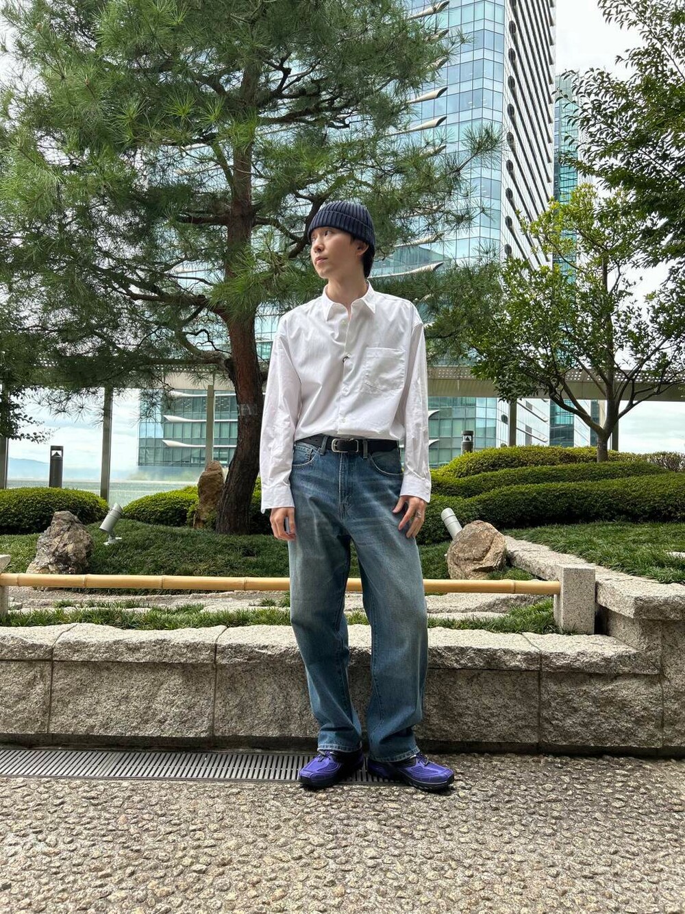 その中でもオススメな商品を使ってコーディネートを組みました。キレイめ代表の白シャツは合わせるパンツや靴をカジュアルなアイテムと組み合わせる事でビジネス感が消え、とても雰囲気あるコーディネートになります!また今の季節からでも着用できるニット帽を被ることで自分らしさを表現しました!