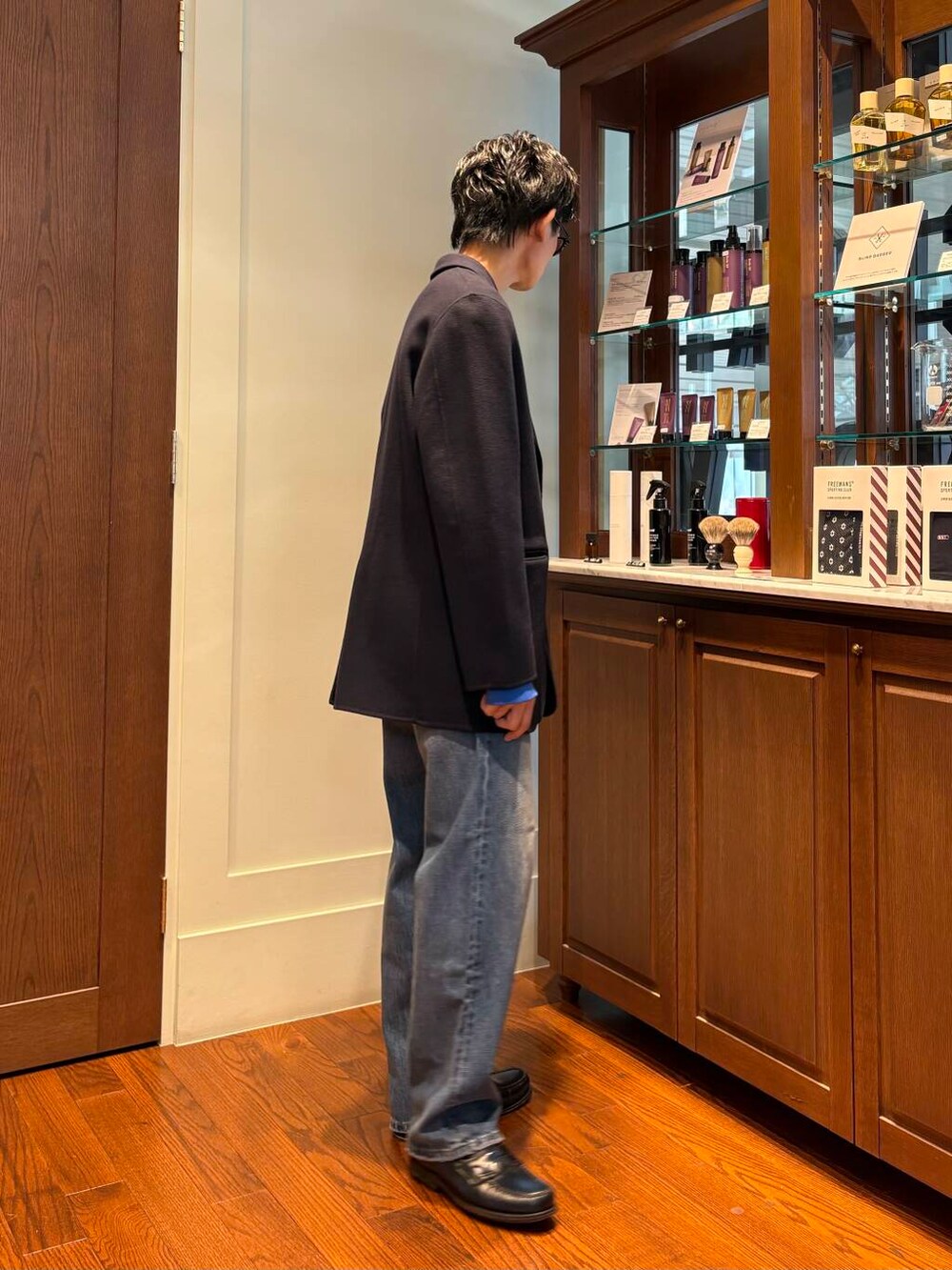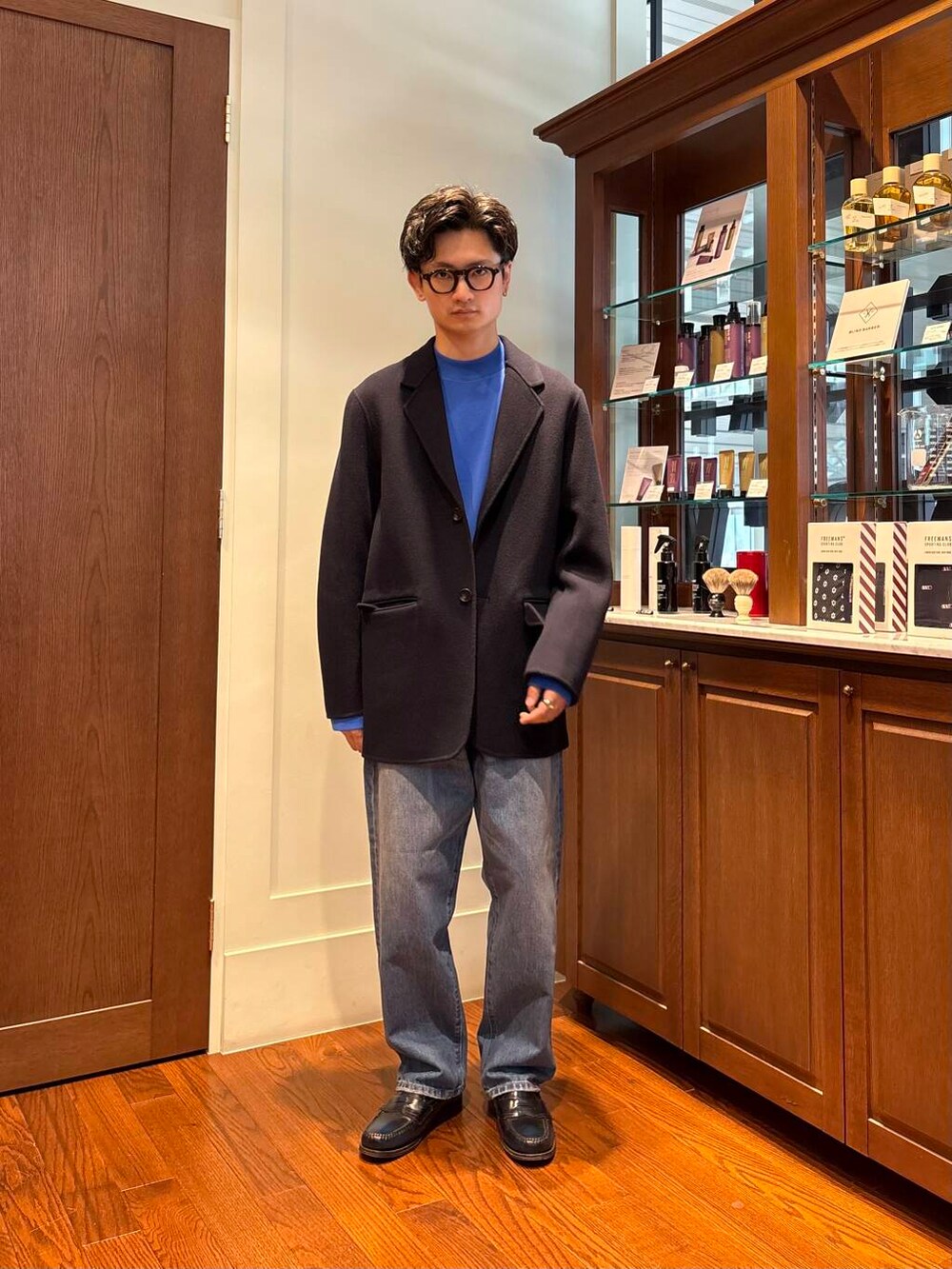 このジャケットはテーラードでありながらルーズシルエットなので、キメすぎることなく着ることが出来ますね