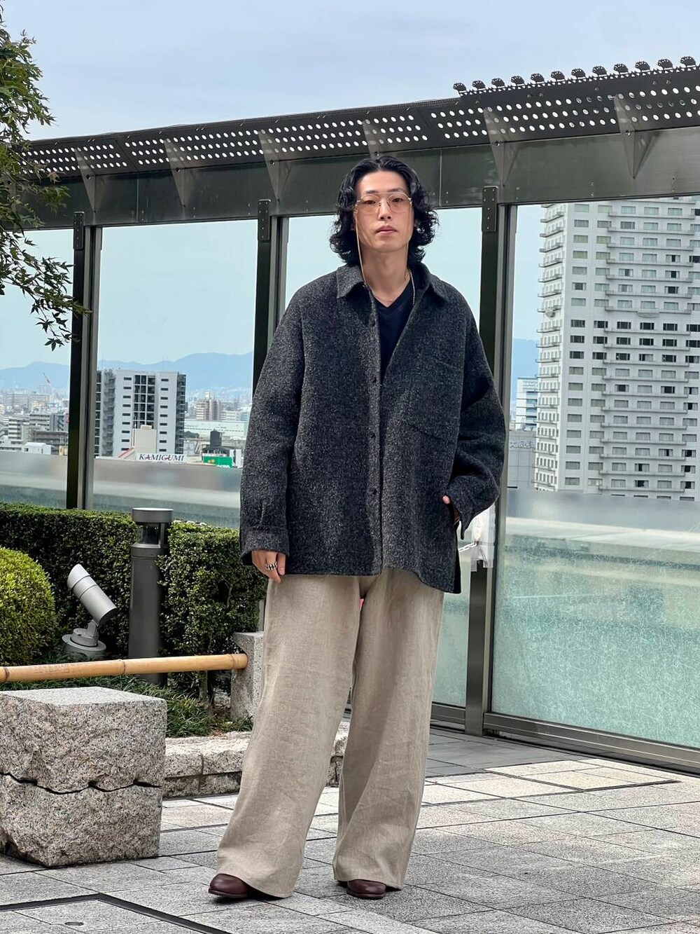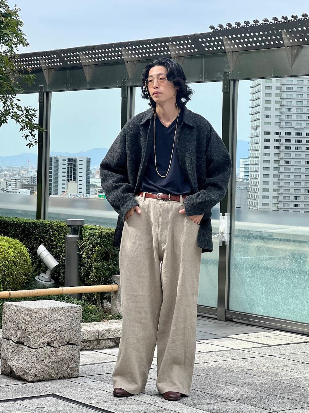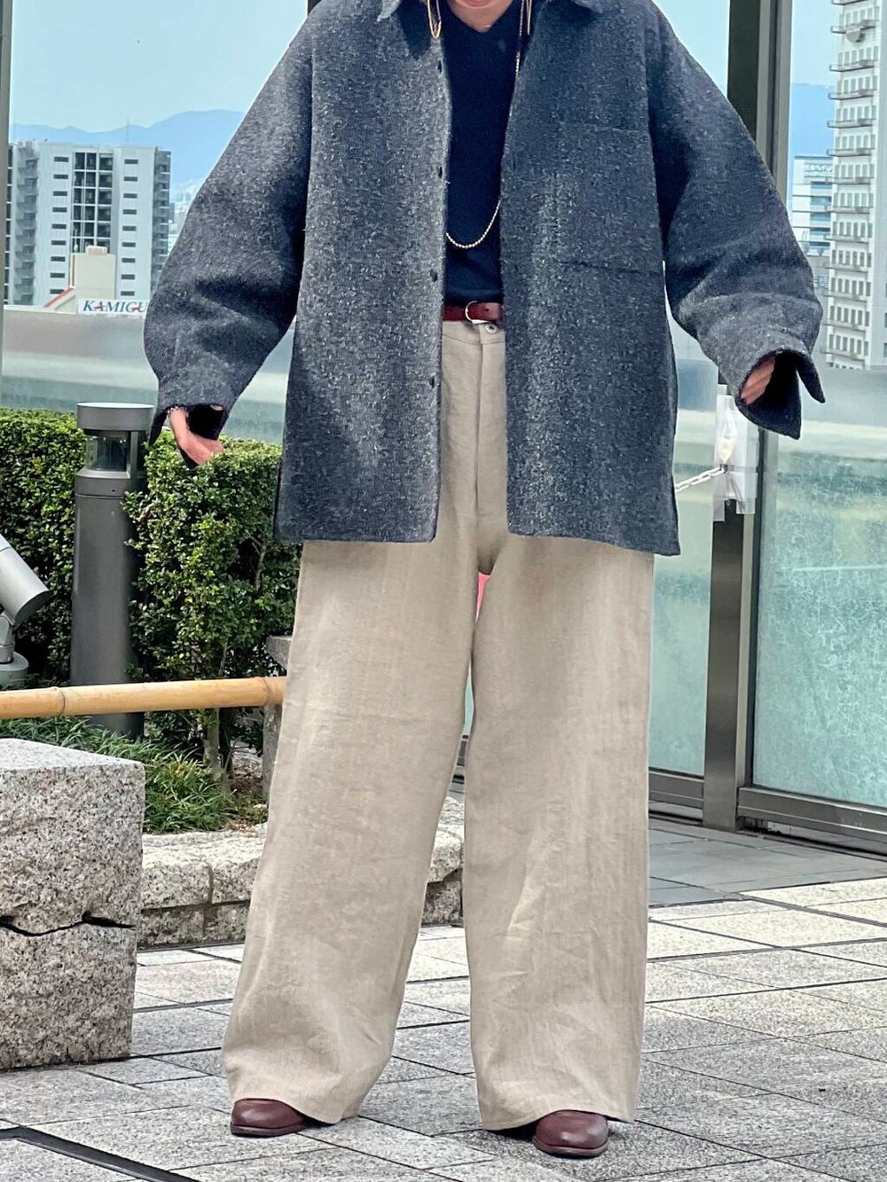 超極太な極厚リネンパンツに、イレーブの秀逸な引き算されたシャツジャケット。