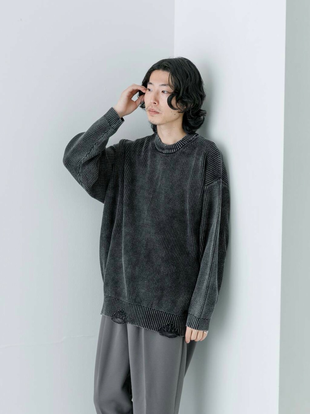 URBAN RESEARCHURBAN RESEARCH iD ストーンウォッシュダメージニット