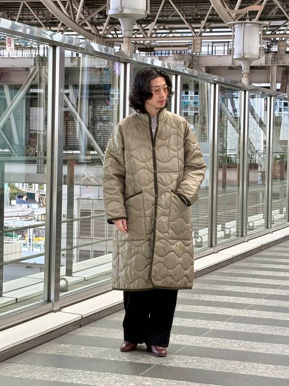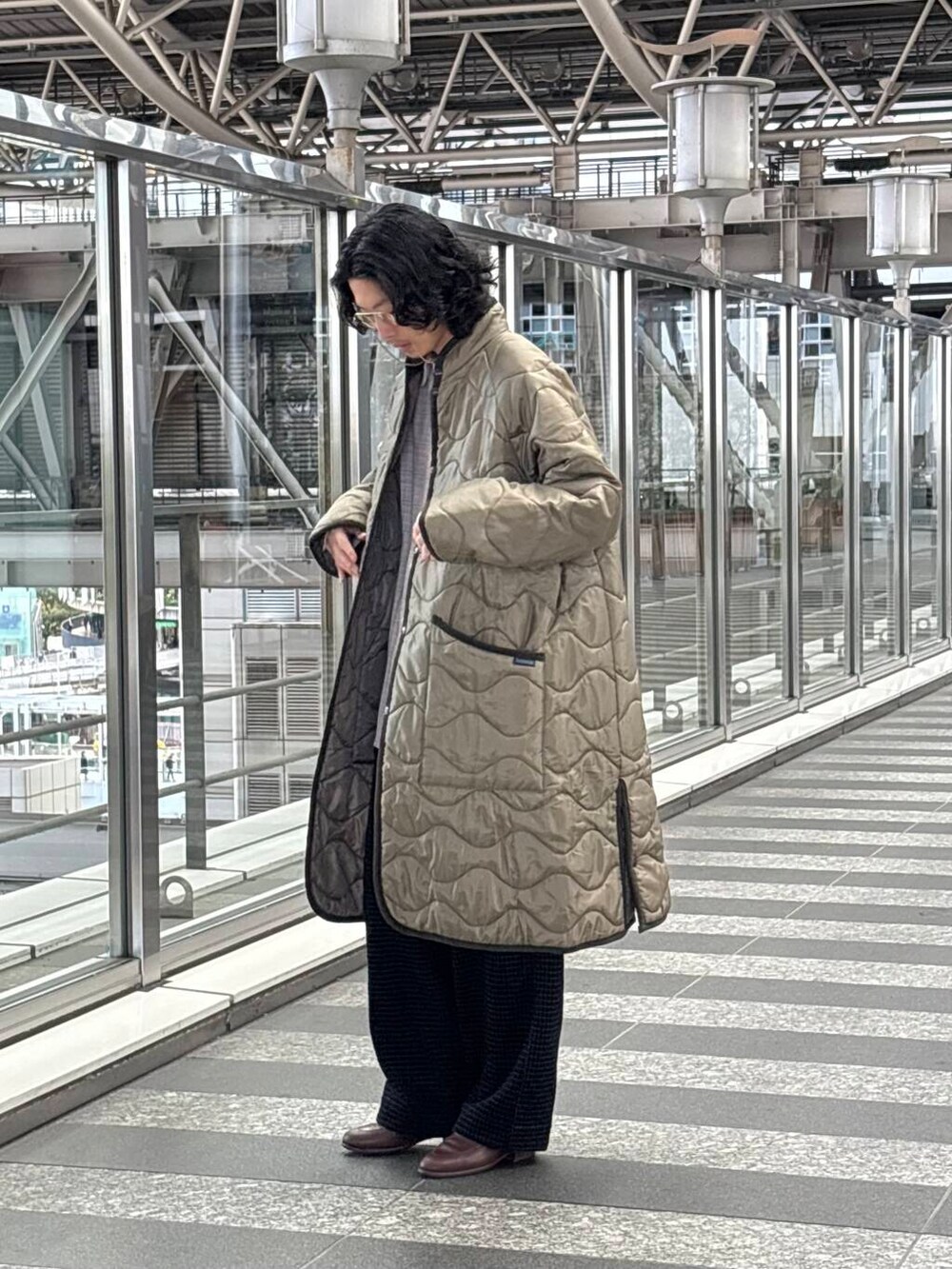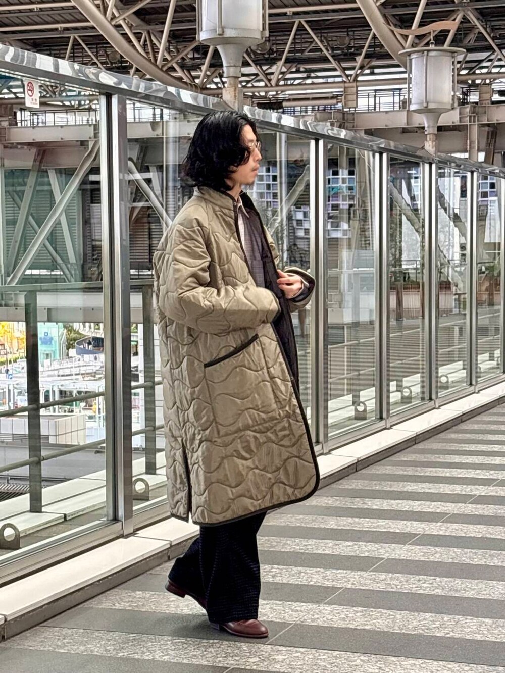 このラベンハム製のイレーブコートは羽織るだけで立体的に見えるキルティングのロングコート。インナーなんて気にしなくてもいい。ほんでもってかなりあたたかい。