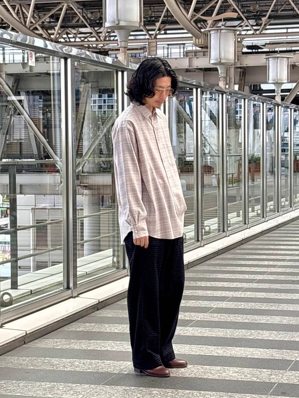 キルティングを引き立てるかのようにマーカのおしゃれな色したチェックシャツ。もちろんこの時期なんでウールで。