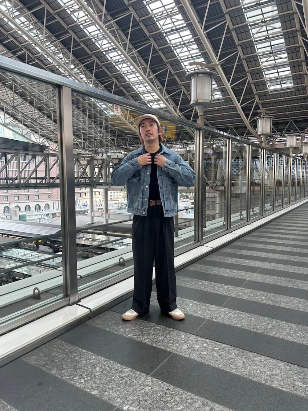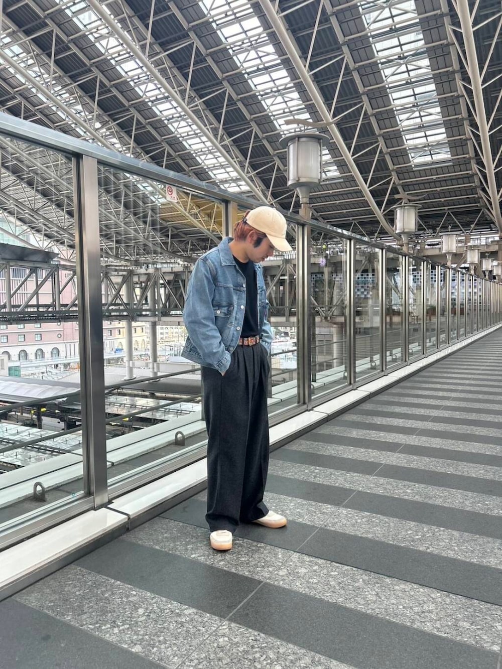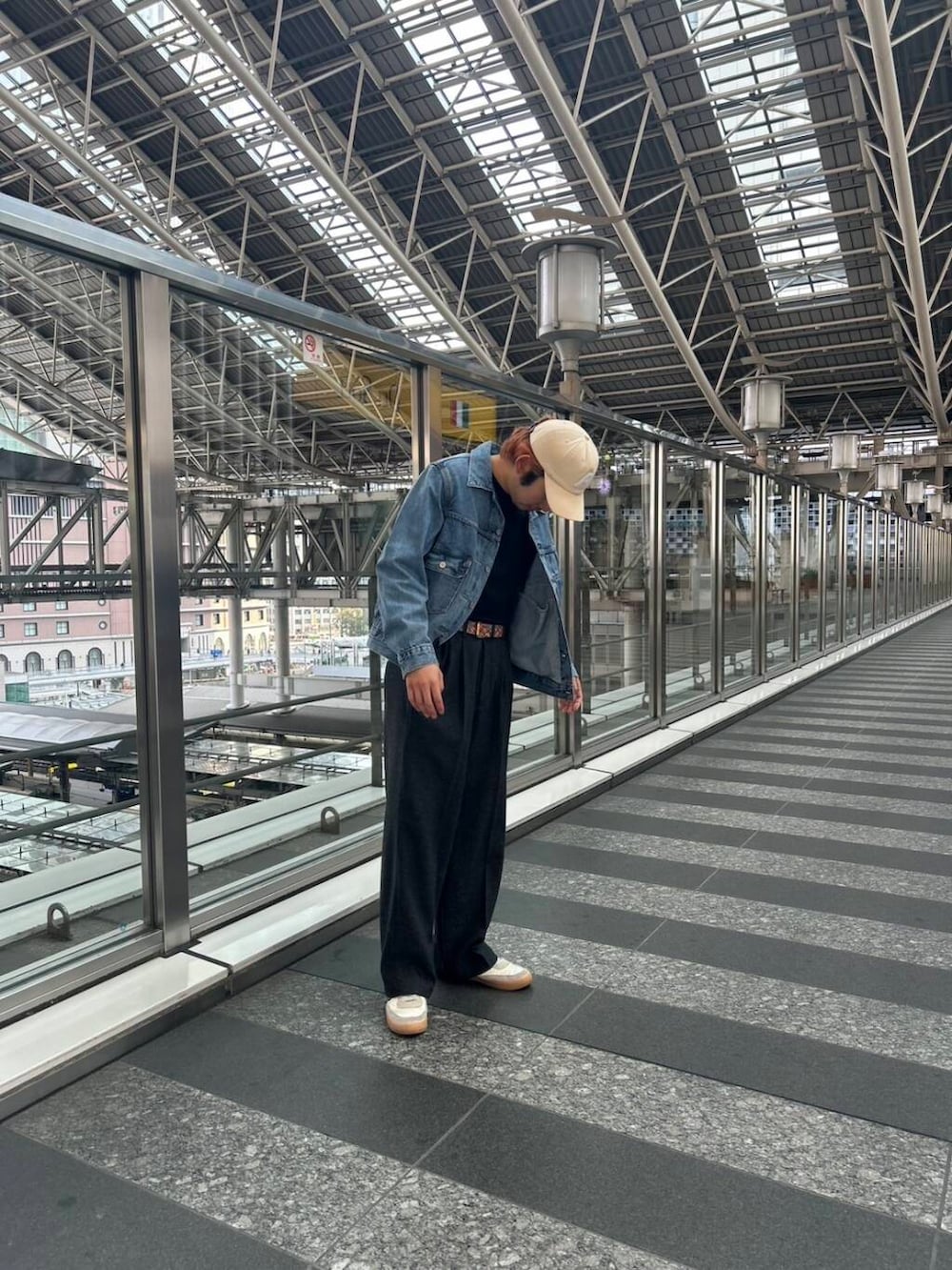 個人的にはデニムジャケットは綺麗めスラックスで合わせるのがしっくりきます!!