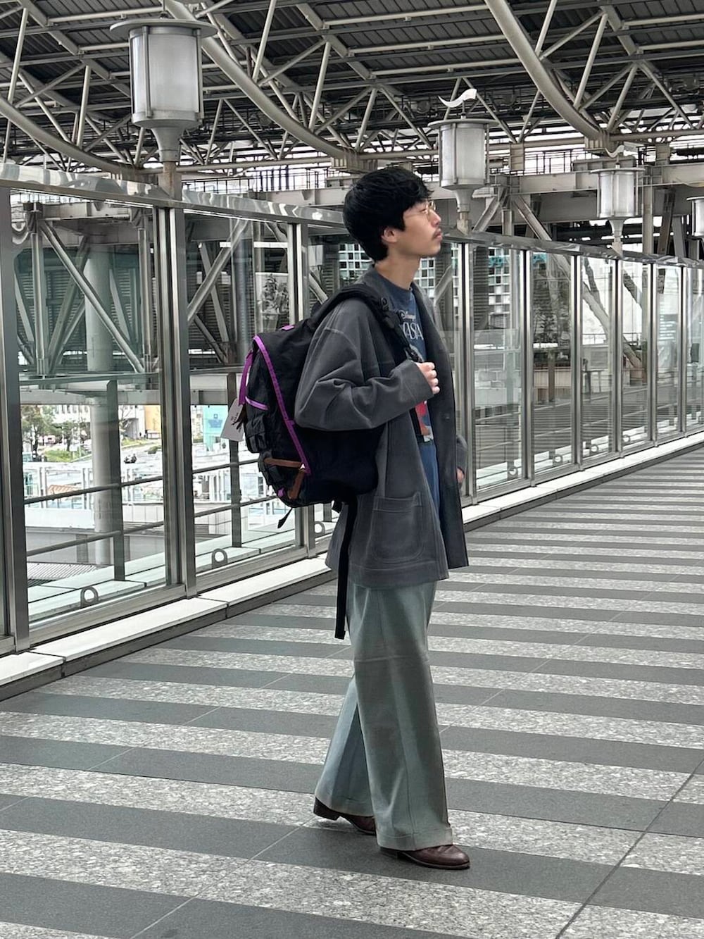 でもあくまでcaleのモダンな部分は忘れたくない。今の最高峰と言っても過言ではないセントマイケルのばちばちに加工の効いたラメミッキーにネクサスグレゴリーリュック。モダンさはここで出す。革靴も私物ですが今のブランドを。