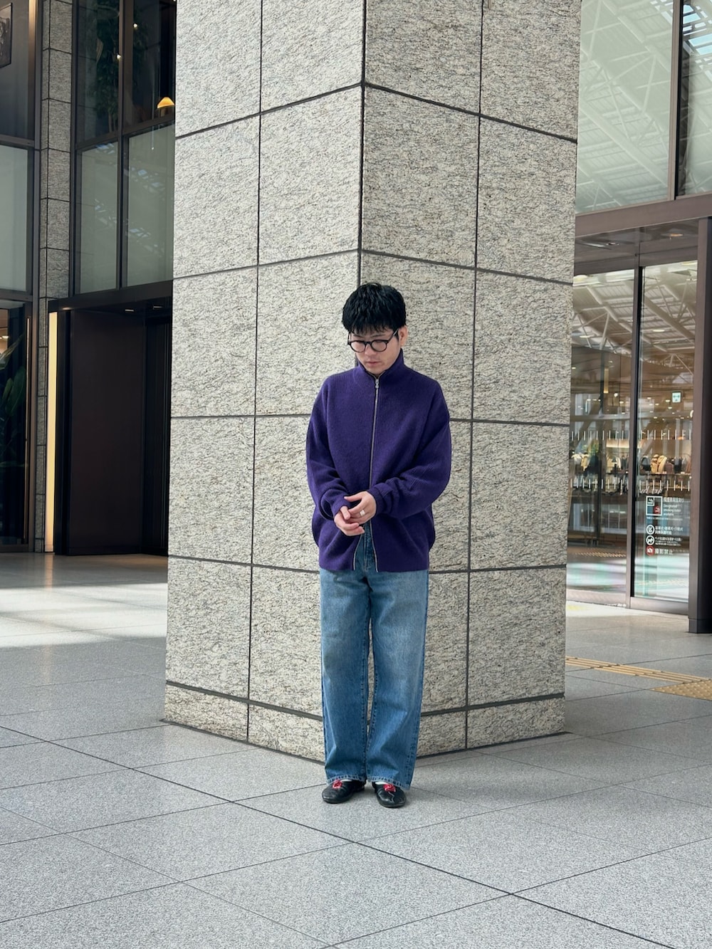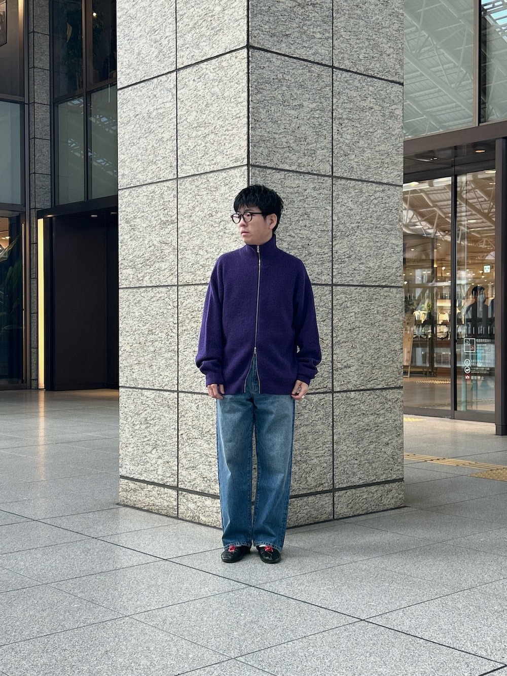 ドライバーズニット1枚で着るのもいいですが、今回は個人的に好きなジャケット合わせで。