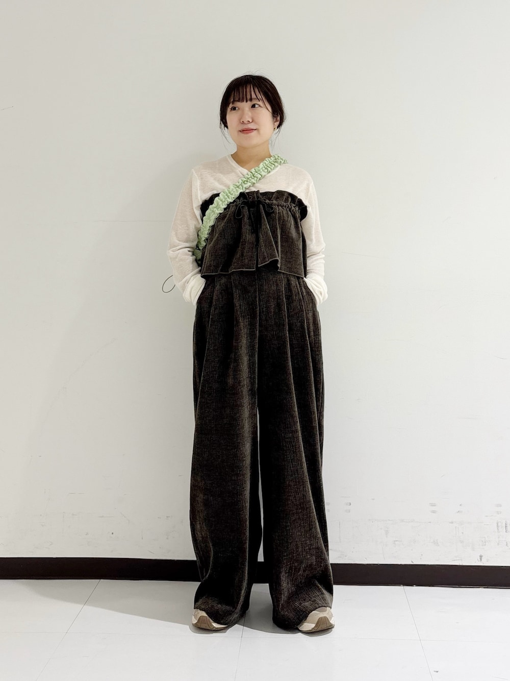 パンツは丈が長くて裾上げしないと履けないことが多いのですが、こちらはそのままでも大丈夫だったので150cm前半の方でも履いていただけますよ🙆♀️✨