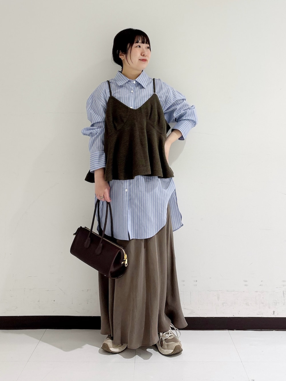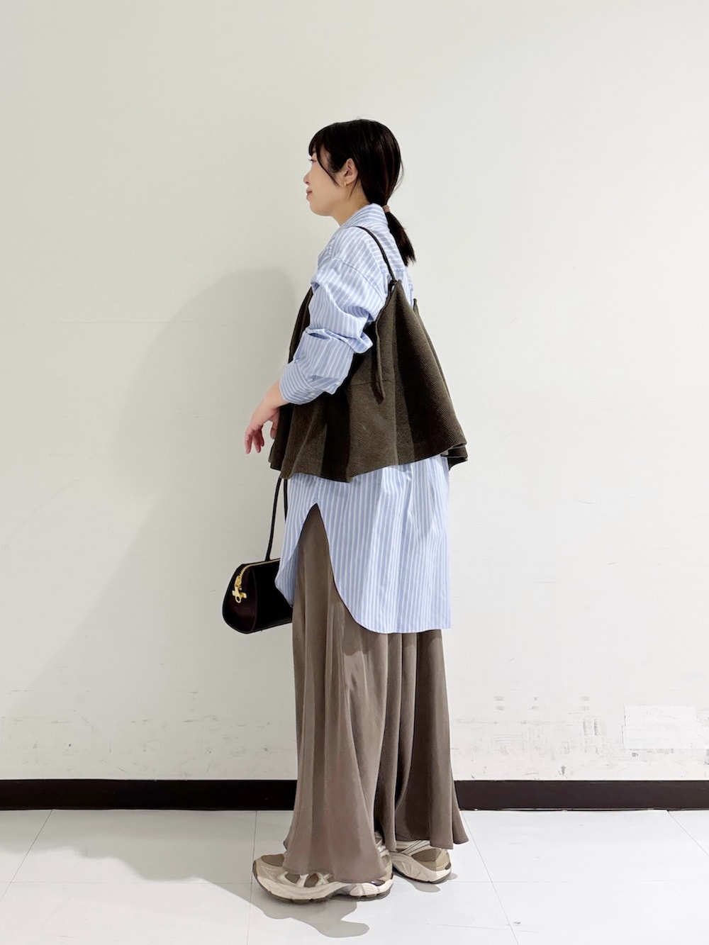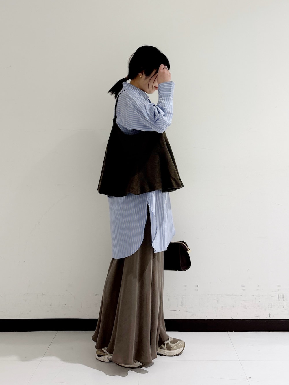 ヒップのラインは少し出るので女性らしいシルエットになり好きなのですが、気になる方は長めのゆったりしたトップスで合わせてもバランスが綺麗でオススメですよ◎