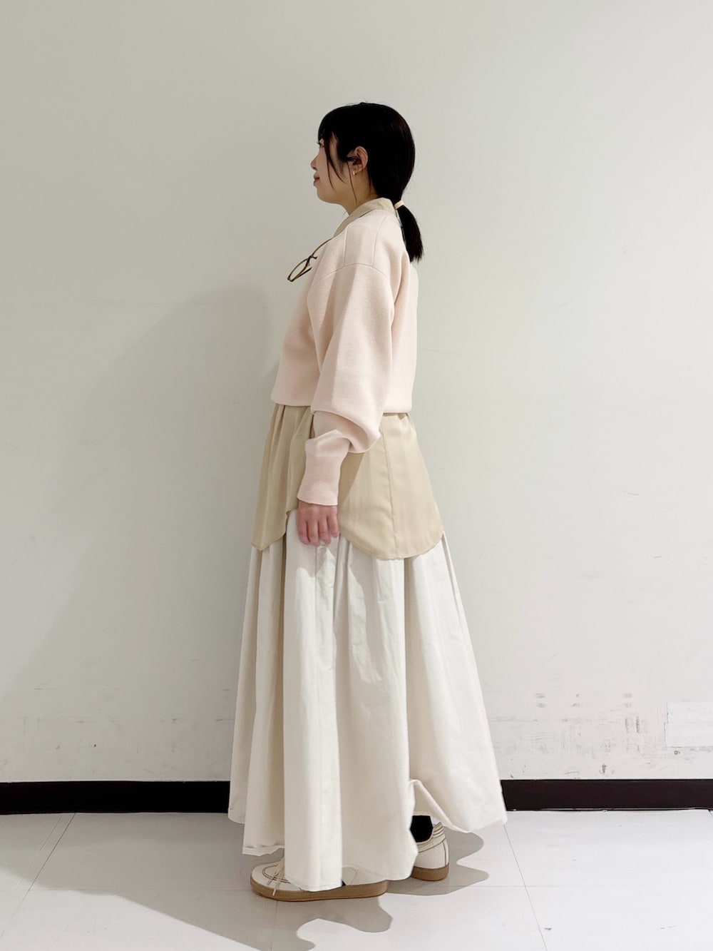 腰でとまる着丈なのでスッキリと着用でき、小柄な方にもぴったりですよ🙆♀️