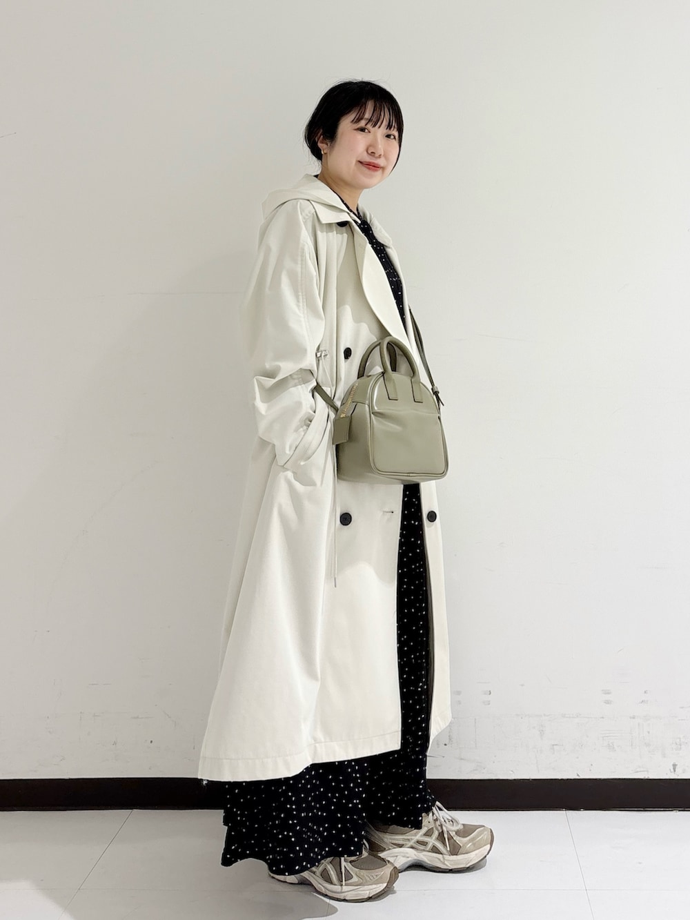 3シーズンで着用していただけて、冬はスウェットやニットをレイヤードさせてスカートとして着るのも可愛いなぁ🤭と。
