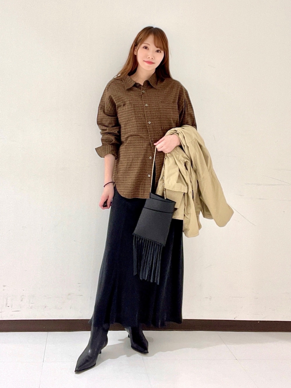 今回はシャツもアウターもカジュアル寄りだったので、アーバンリサーチ定番の細見えスカートを合わせてきれいめに寄せました☺️