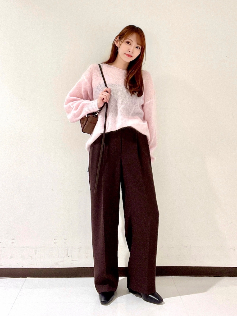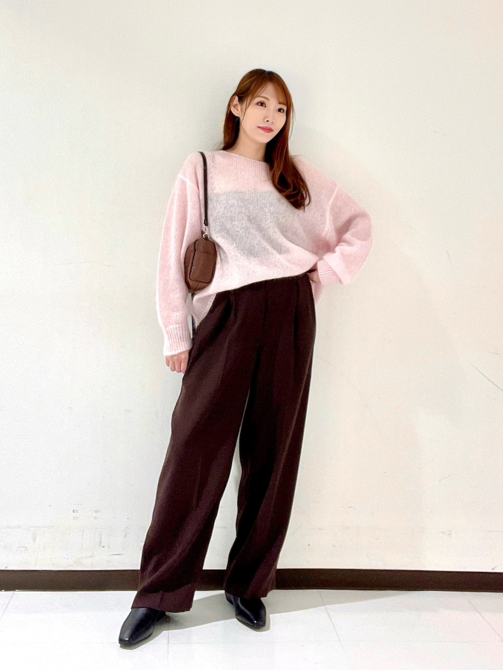 ピンクニットと合わせて甘さを抑えた大人可愛い雰囲気に♡