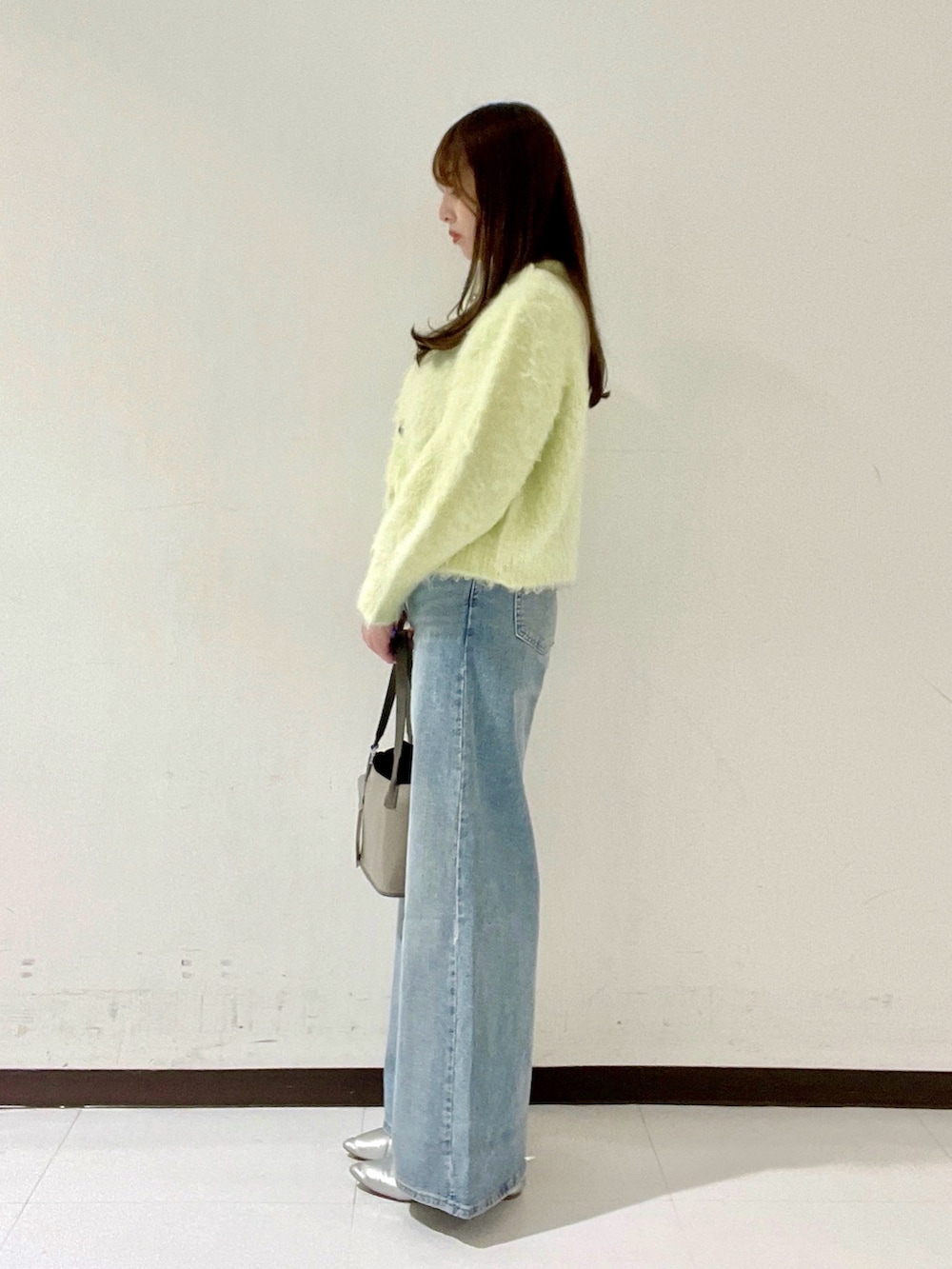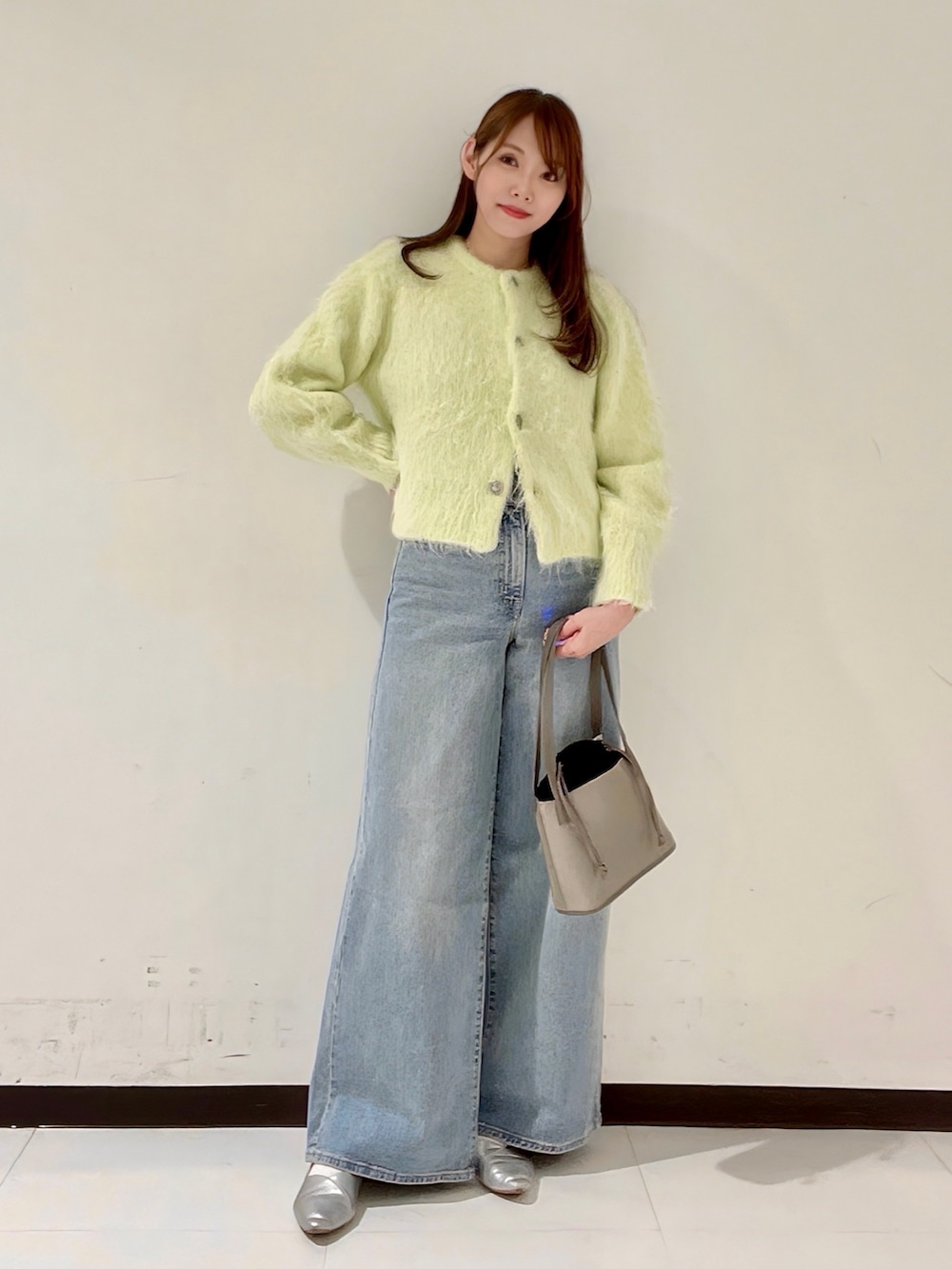 毛足が長めなので、カーディガンとして羽織ると少し大きく見えてしまう印象でした。