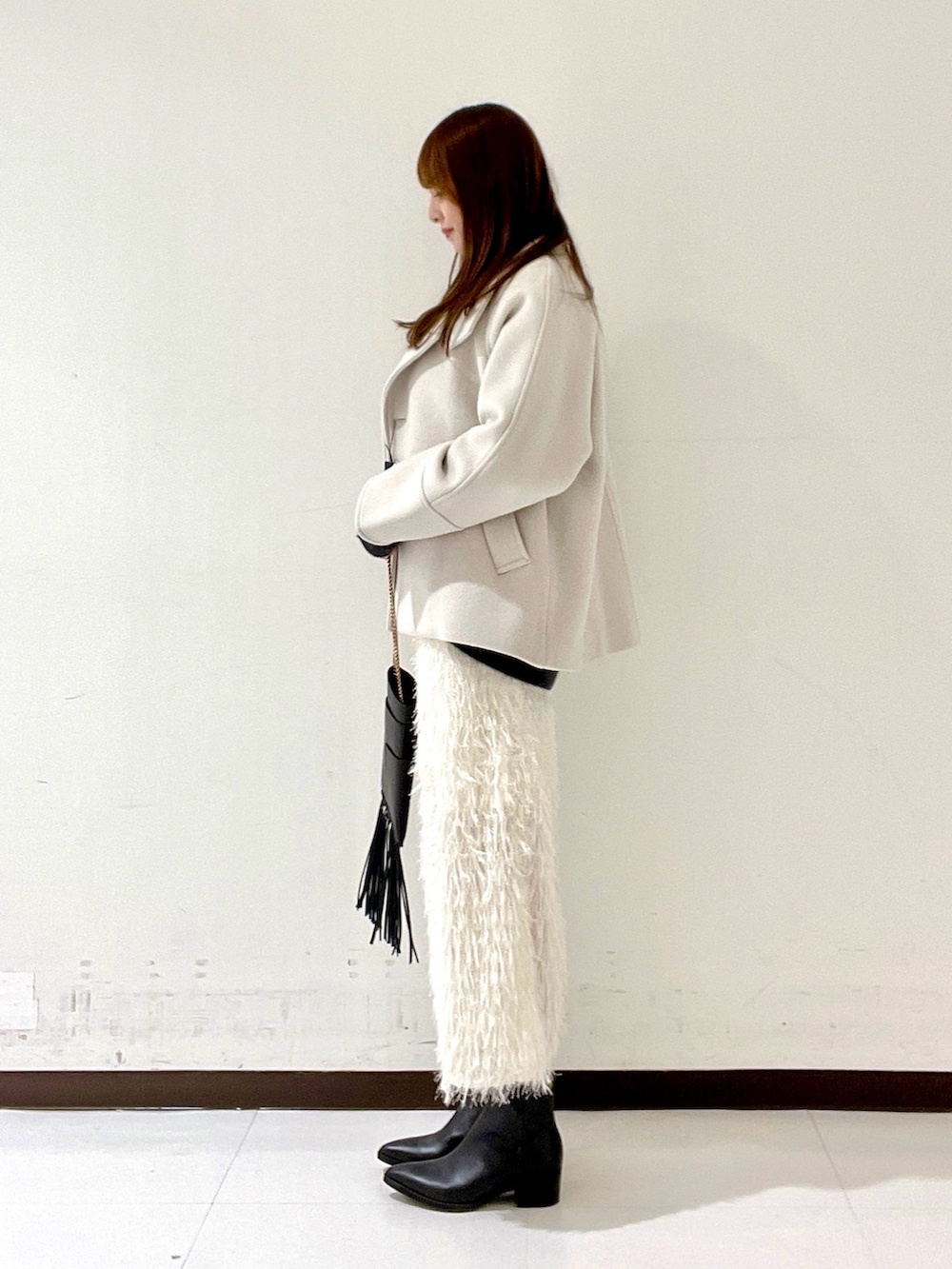 フリンジは短めなので広がりすぎず大人っぽく履けます◎