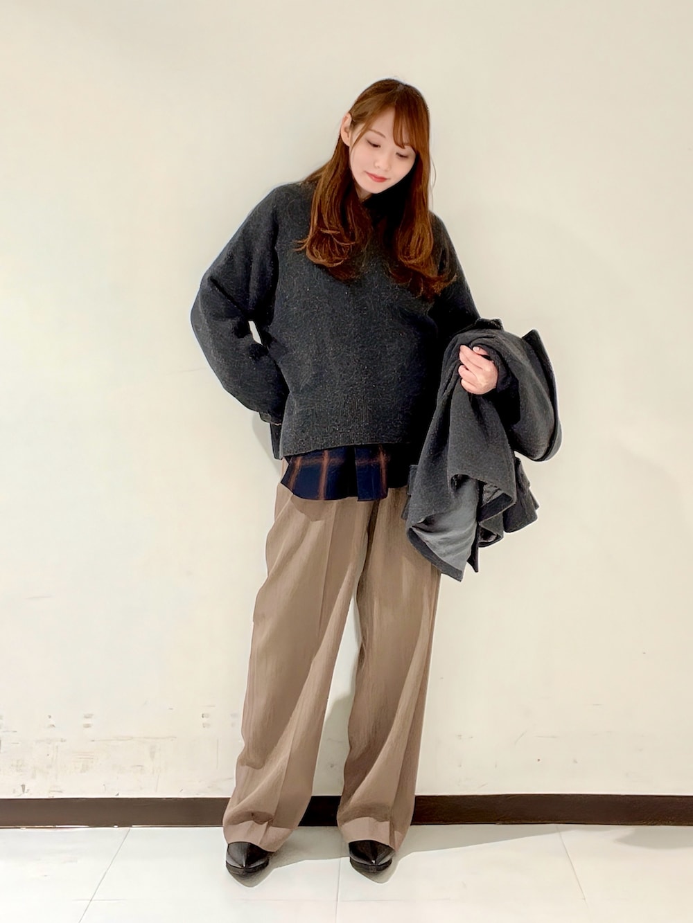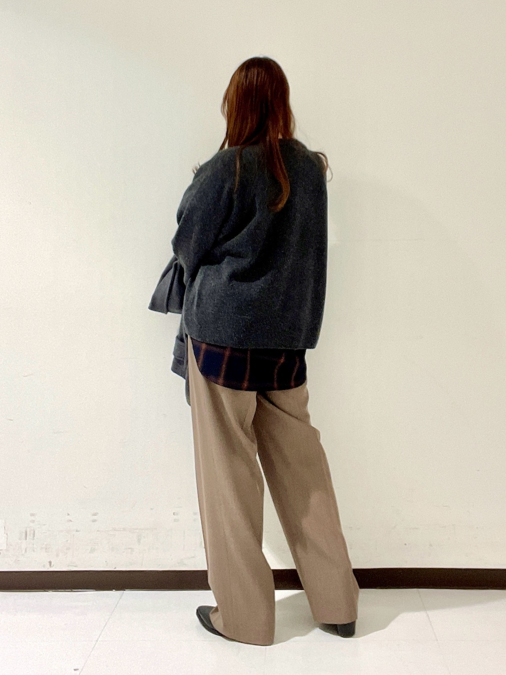 前から見ると腰位置ジャスト、後ろはお尻にかかるくらいの丈感で、どんな骨格の方でもバランスよく着られるニット✨
