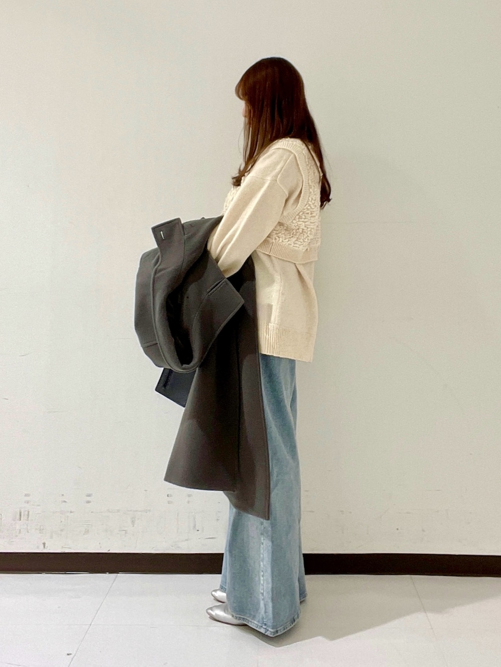 身幅にしっかり余裕があるので、中にニットを着込んでも窮屈に感じません。