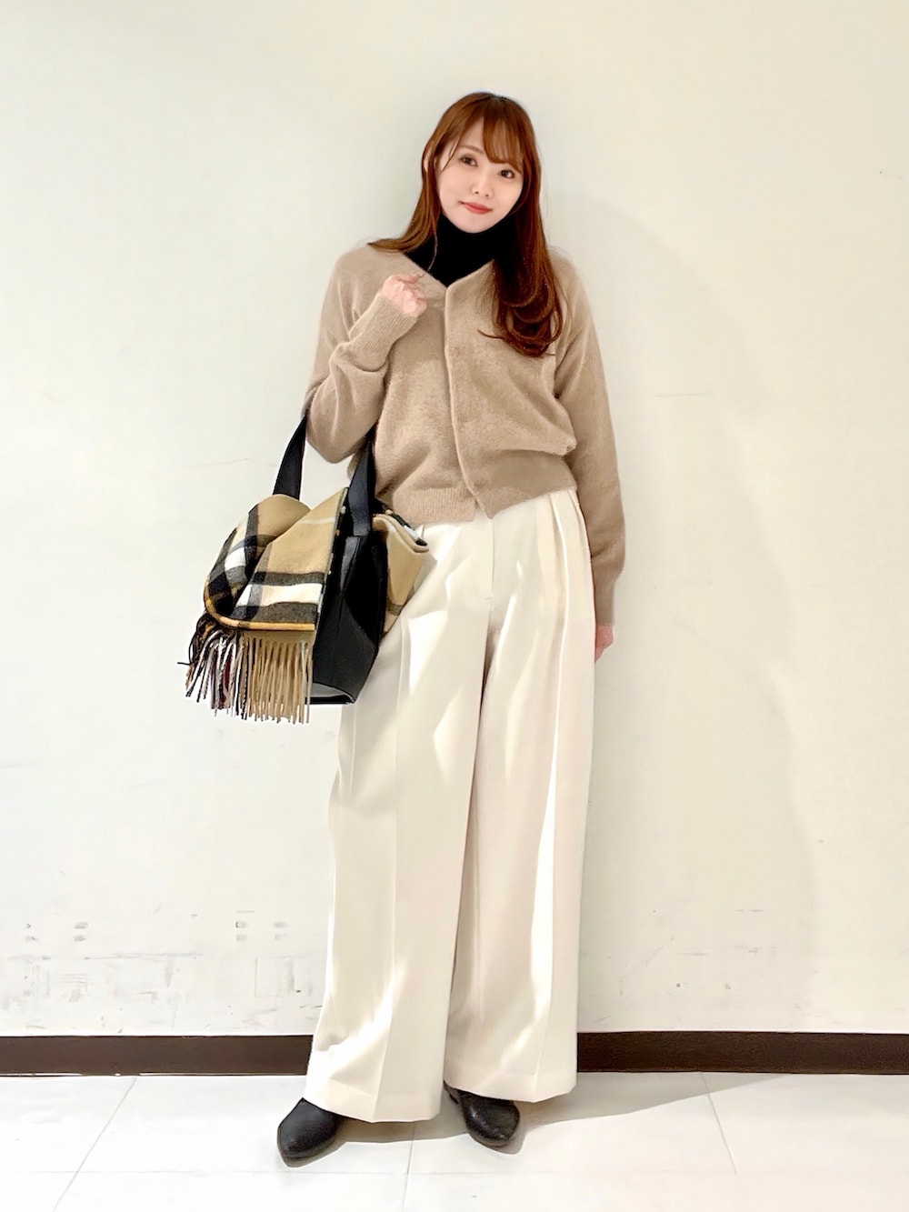 ピタッとしすぎないシルエットで体のラインを拾いにくく、今回ハイネックのリブニットをレイヤードしてももたつかず着ることができました◎