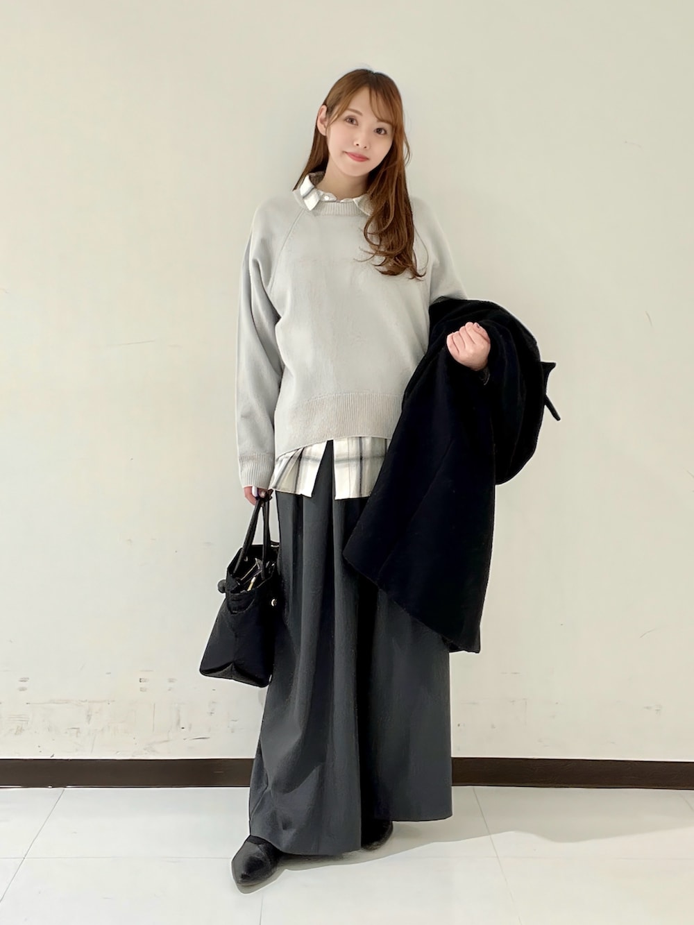 「チェック柄って可愛いけど着るのが難しそう」という方は、ニットの下にレイヤードしてあげるとチェックの面積がぐっと減って、こなれた感じで着ていただけます♪