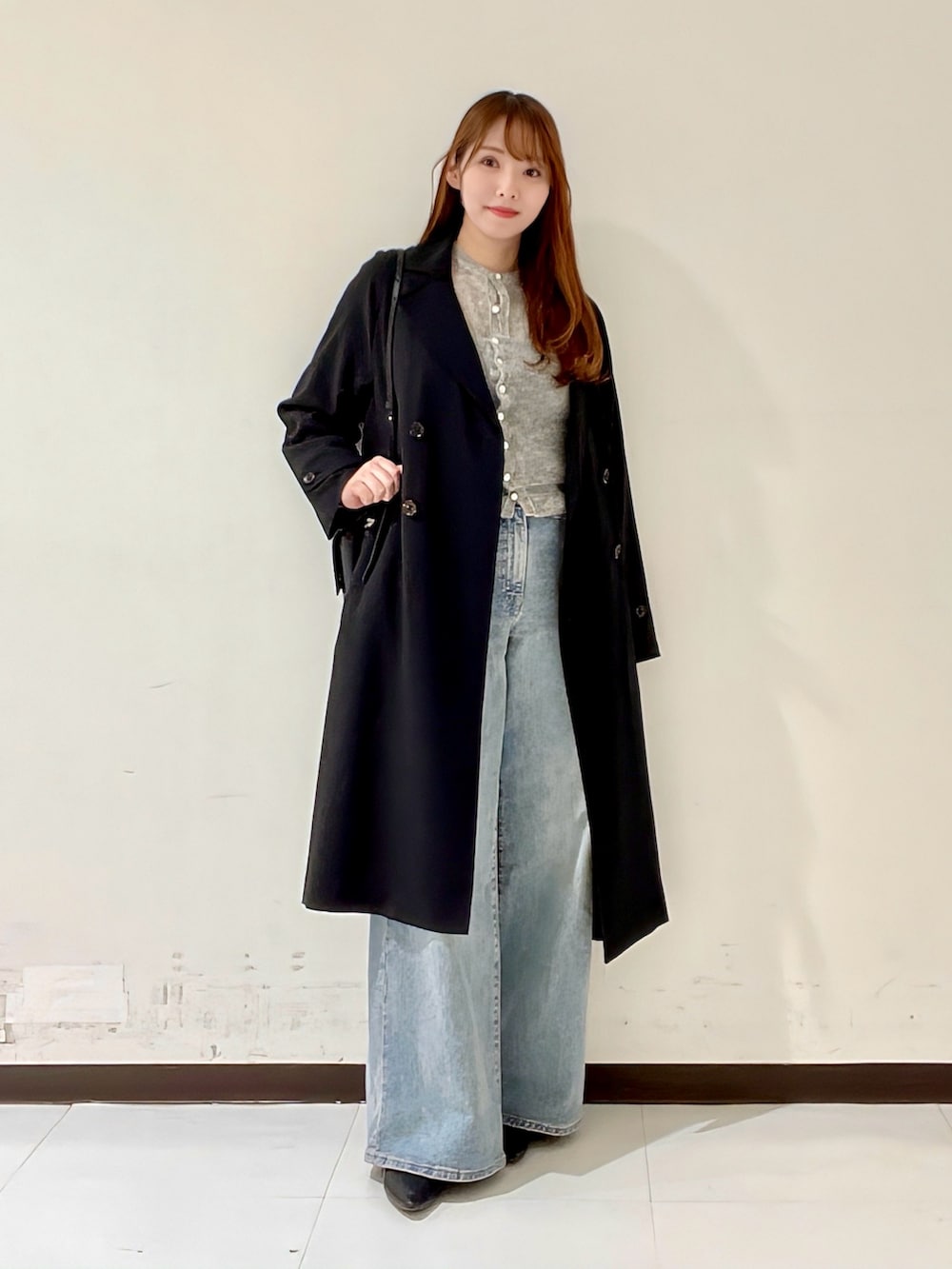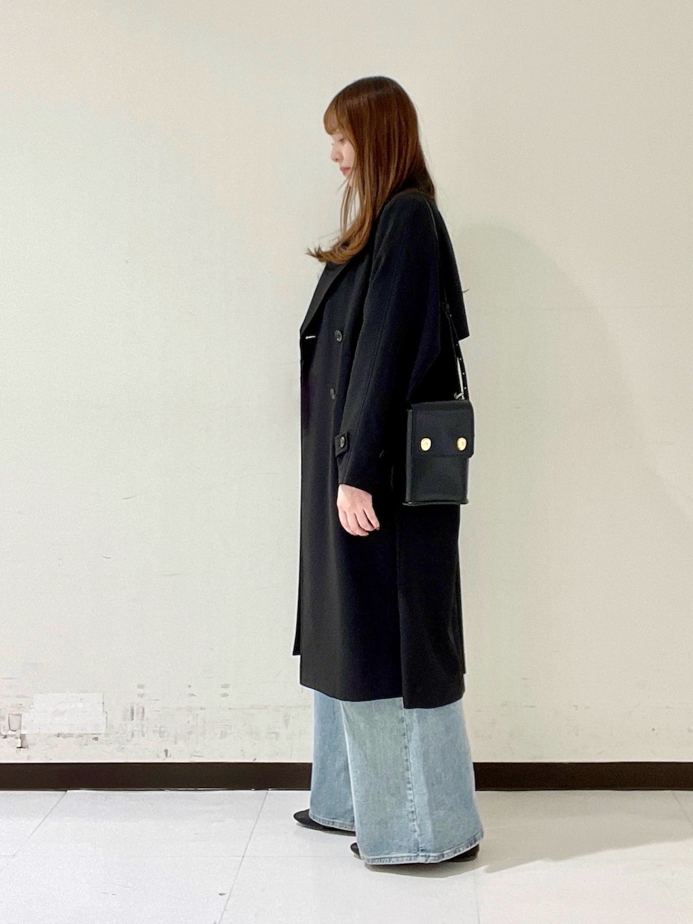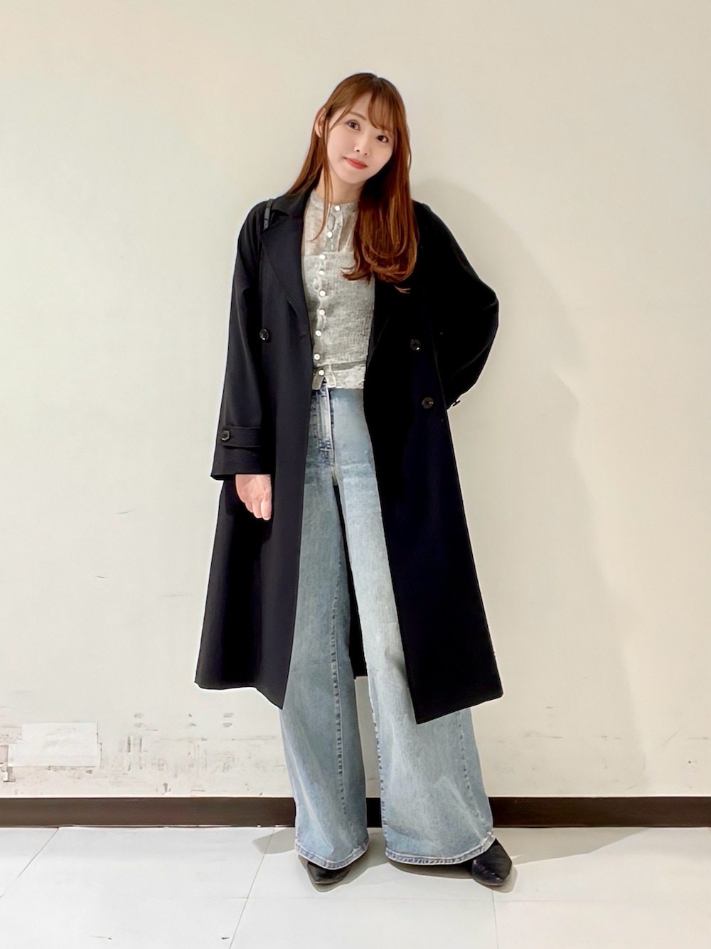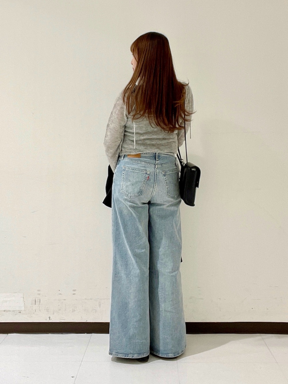 ちょうど腰の上くらいのコンパクトな着丈なので、骨ストの私は今回は腰の張りが気になりにくいお気に入りのリーバイスのデニムを合わせました。