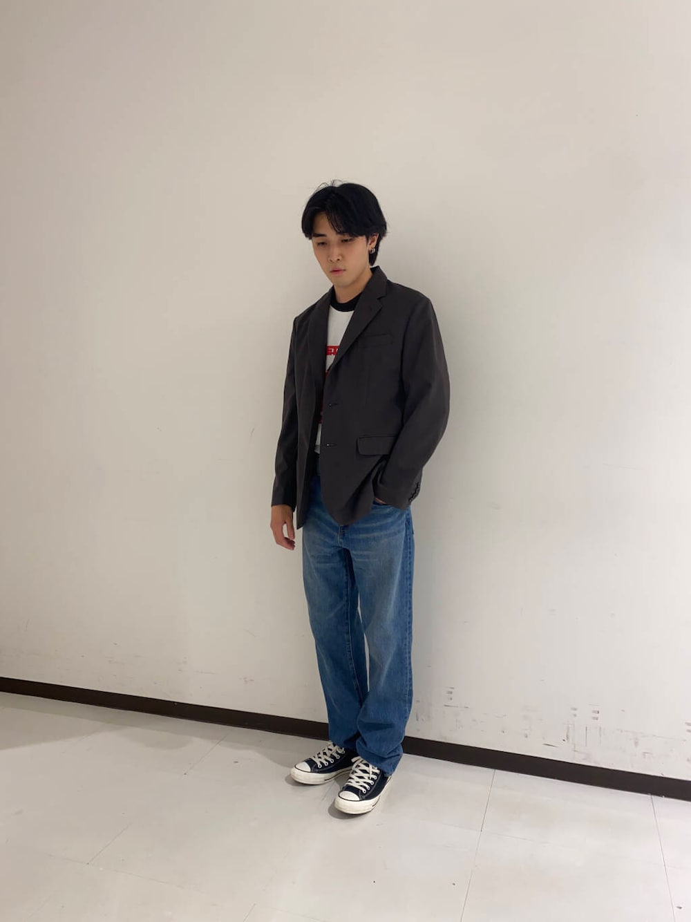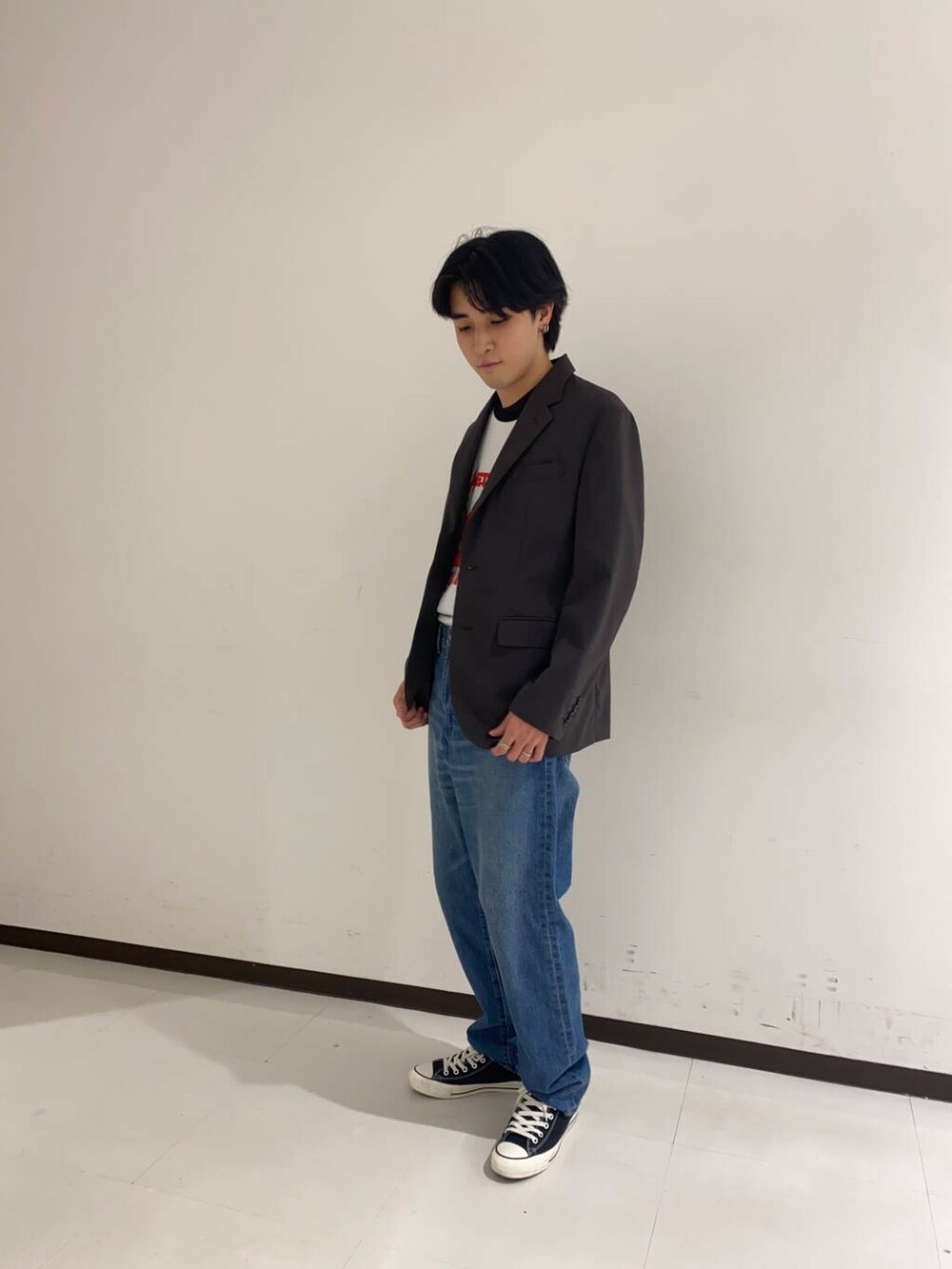 定番インディゴカラーのデニムとジャケットの相性は抜群!!プリントTシャツでカジュアルに決めたり、シャツをインナーに取り入れることでスマートさを演出したり、インナーの着回しでたくさんのコーディネートが組めます!