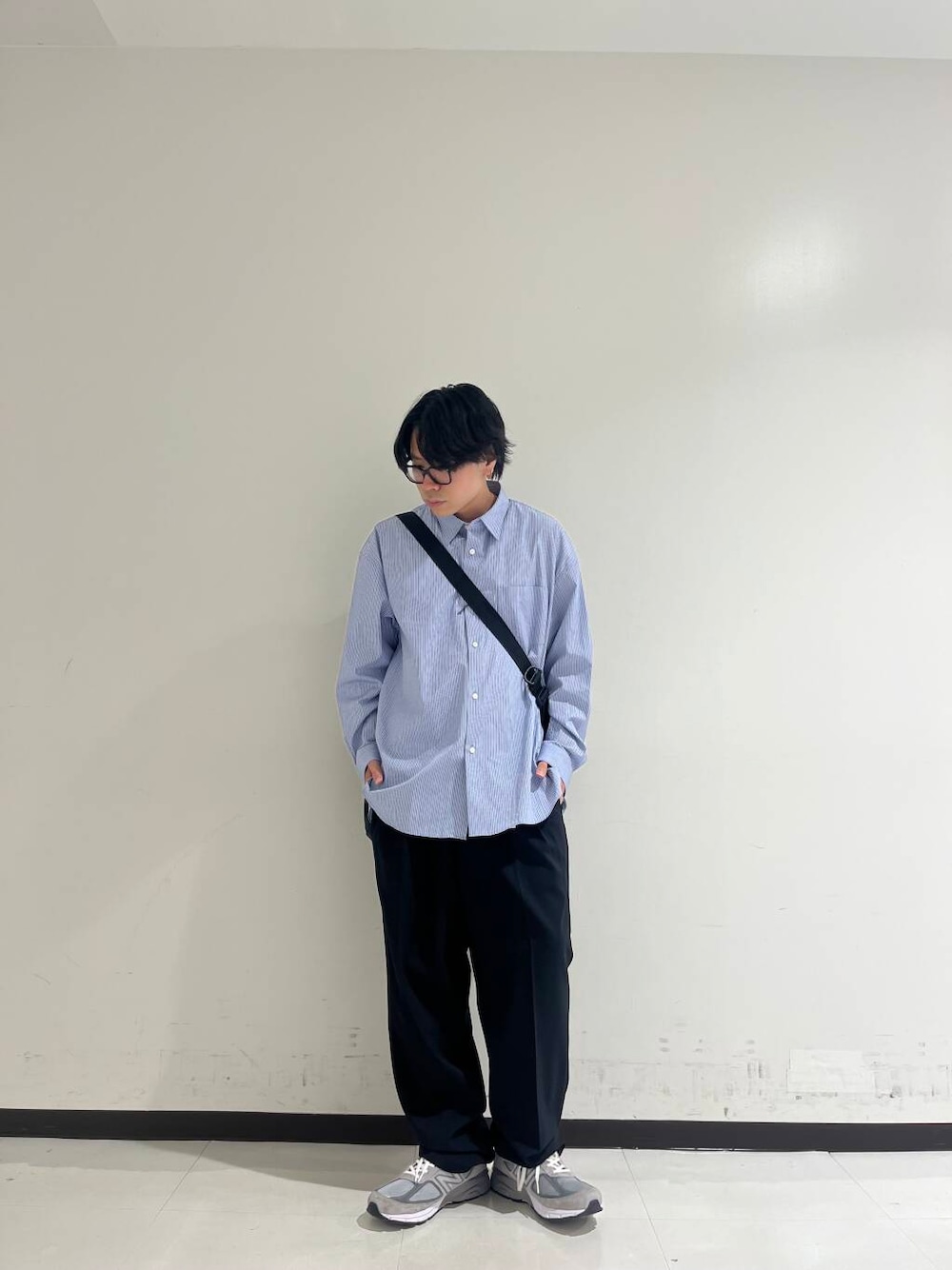 本日はトーマスメイソンオーバーシャツをメインにスラックスでキレイめ要素をプラスしたコーデをご紹介させていただきます。革靴で重たくならない様ニューバランスでカジュアルな要素も取り入れたのもポイントです。