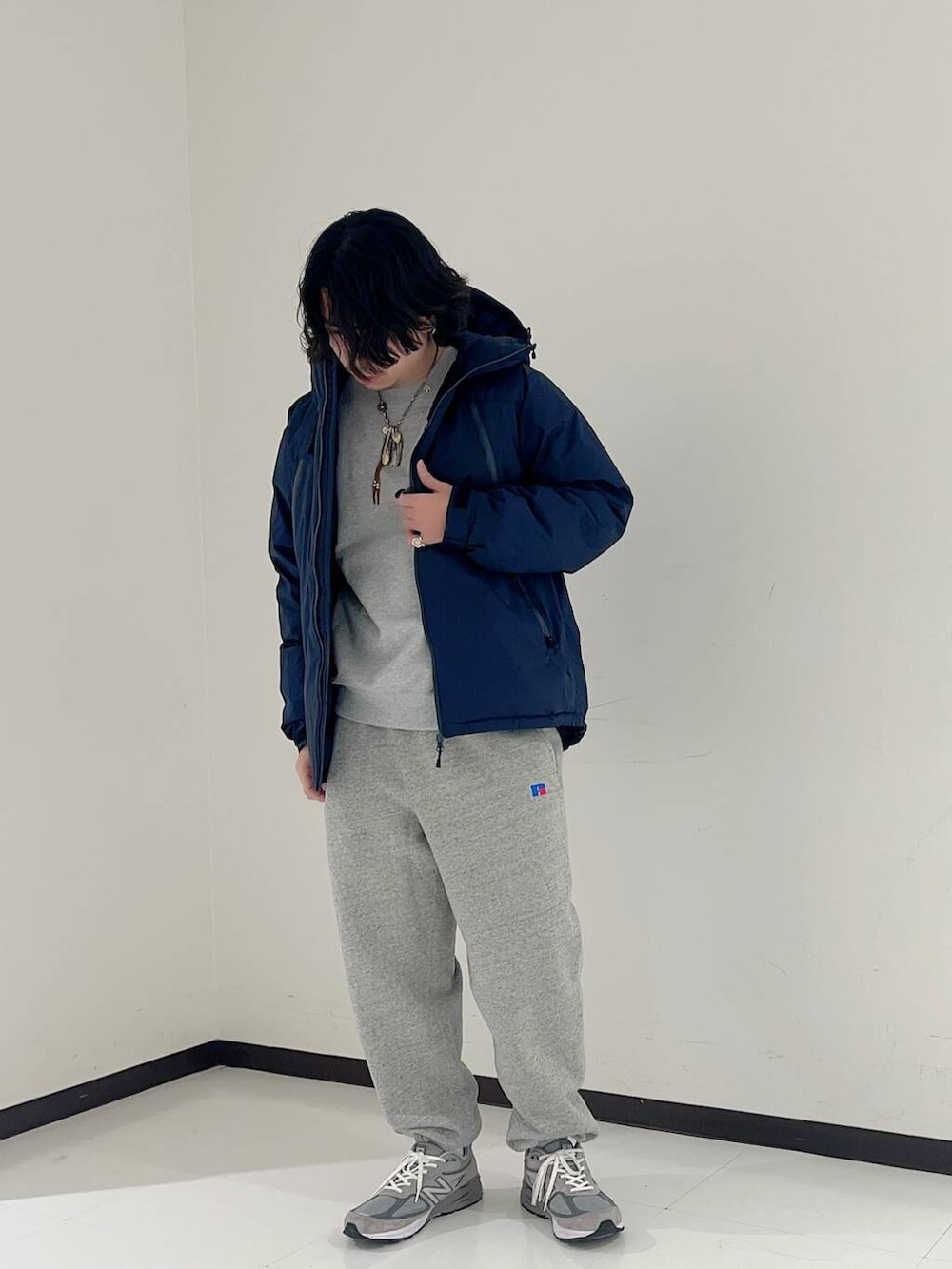 ご覧いただきありがとうございます!本日はナンガのダウンをメインに上下スウェットのラフなコーデのご紹介です。