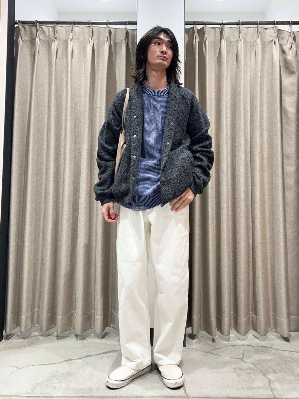 リラックス感は前提としながらも、いなたくなり過ぎないようパキッとした白デニムで中和。ボアカーディガンもどこか上品さもあって幅広く様々なスタイルに適応します。