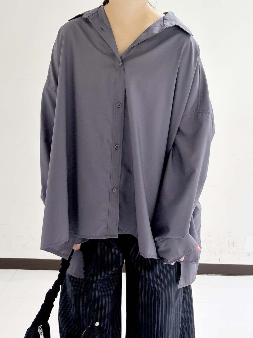 ゆったりとしたワイドシルエットのシャツは1枚で主役になります😊