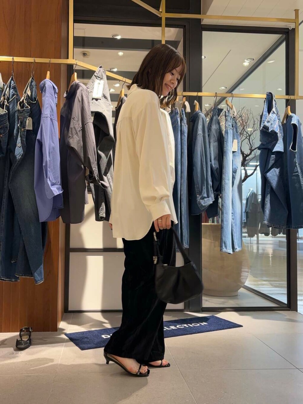 ベロアパンツも楽ちん+こなれ感で、一枚持っておくと万能です。