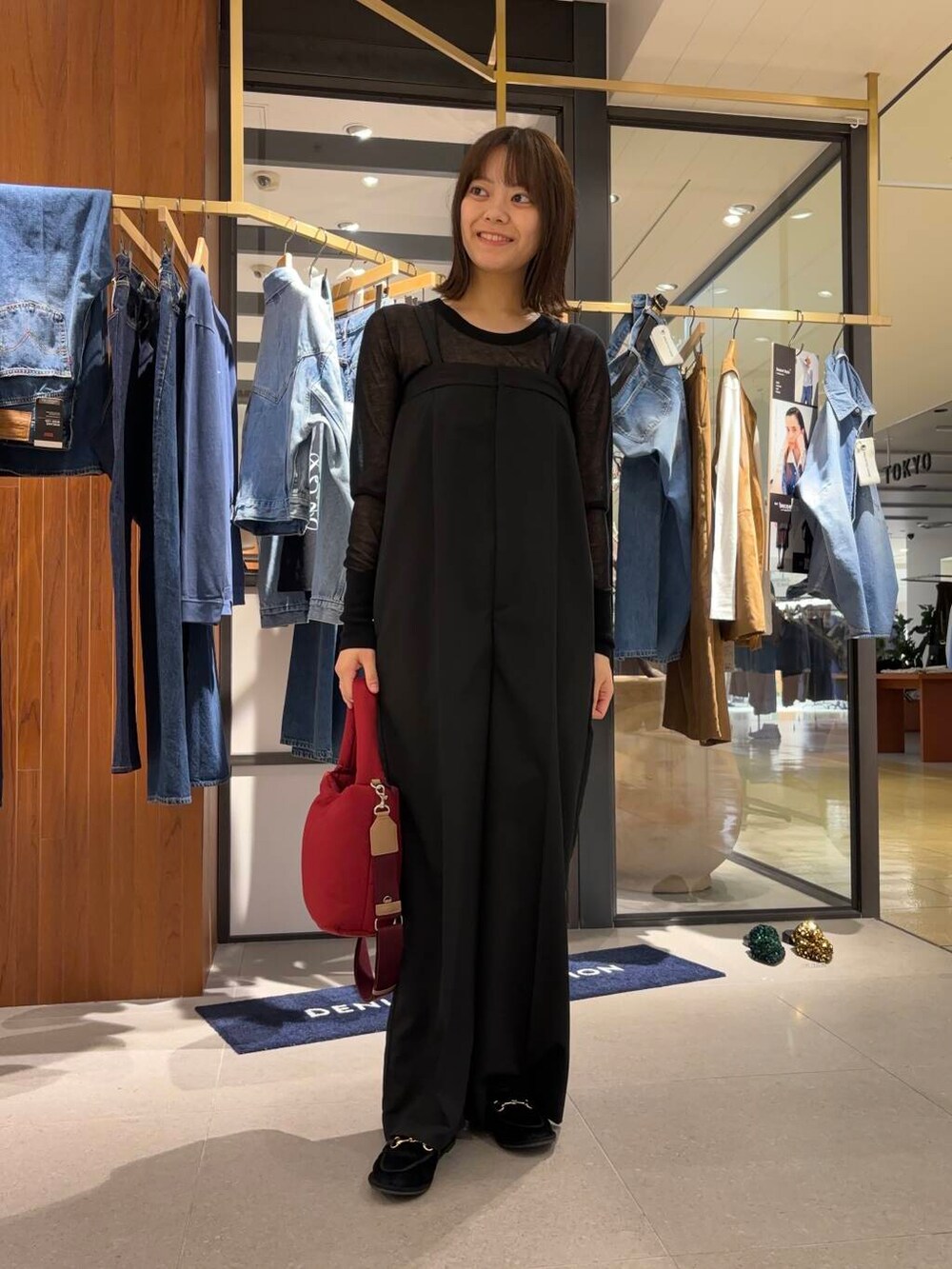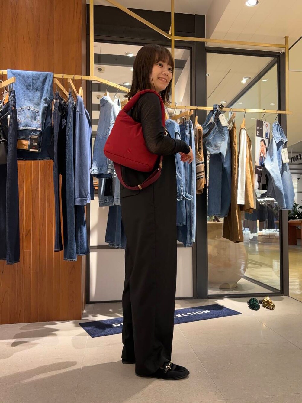 バッグは赤でアクセントを🍎
