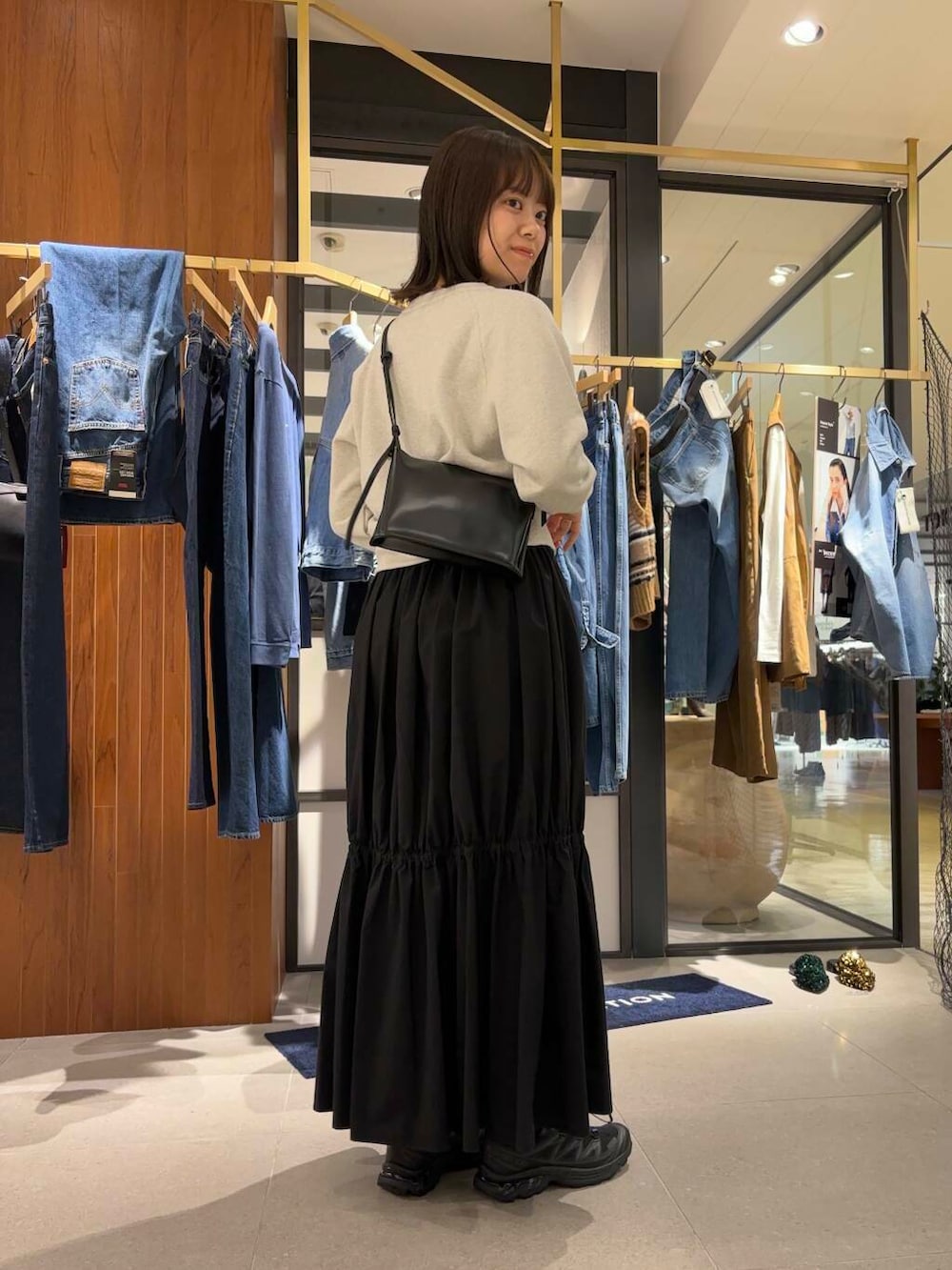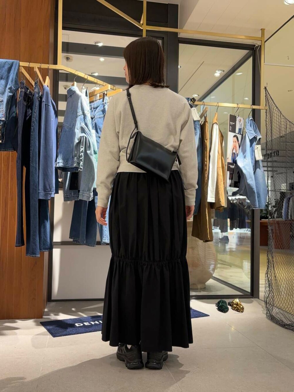 スウェットはコンパクトなサイズ感ですが、程よく腕まわりにゆとりがあるので体のラインを拾いにくく、着心地も楽です!