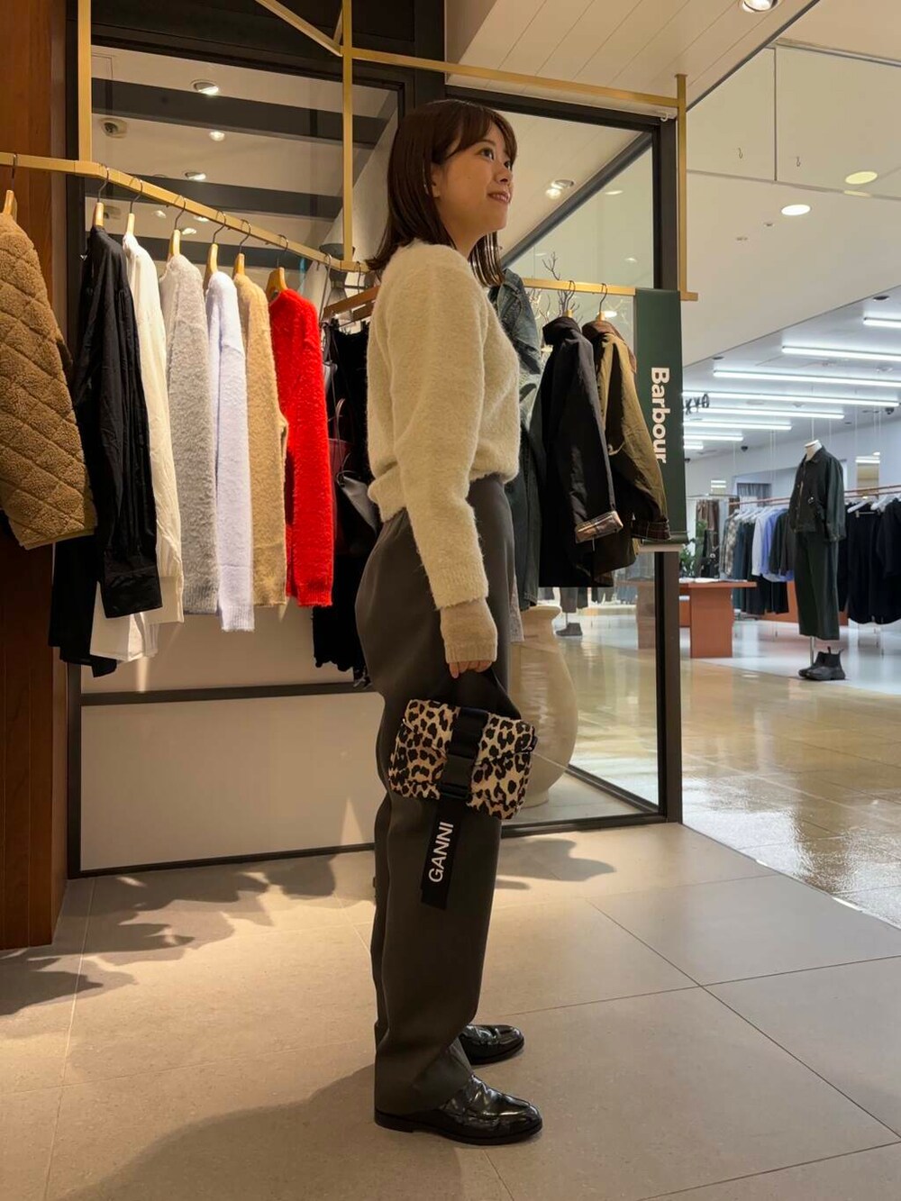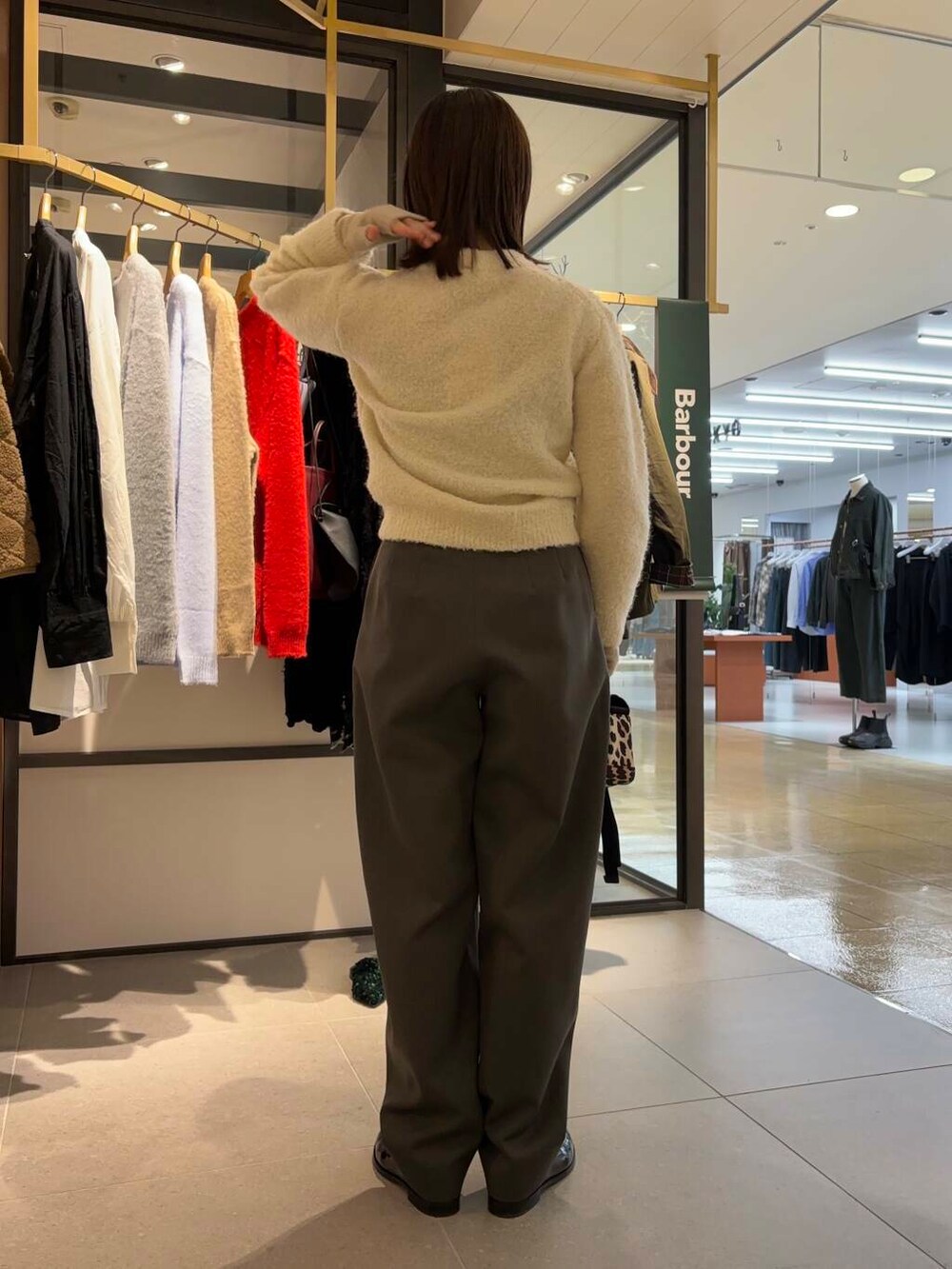 ニットは着丈が短めなのでハイウエストなパンツと相性が良いです◎