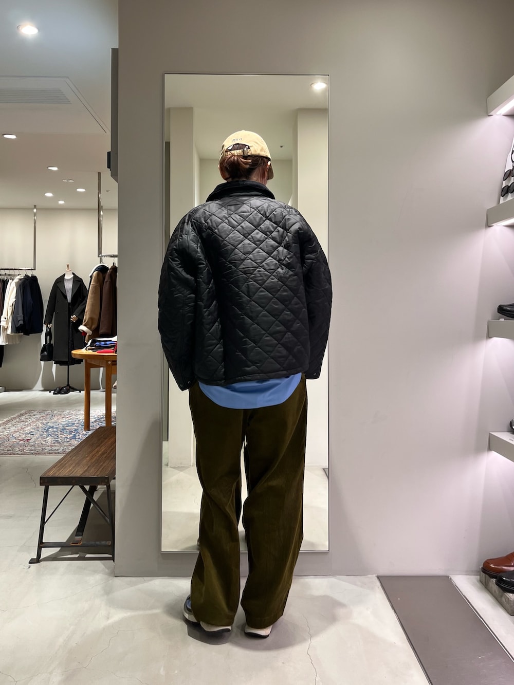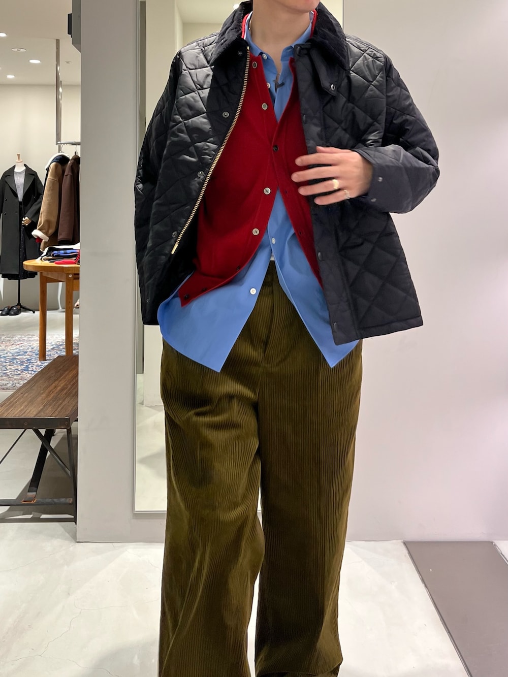 ポイントは差し色の赤と季節感のキルティングでホリデースタイルです!