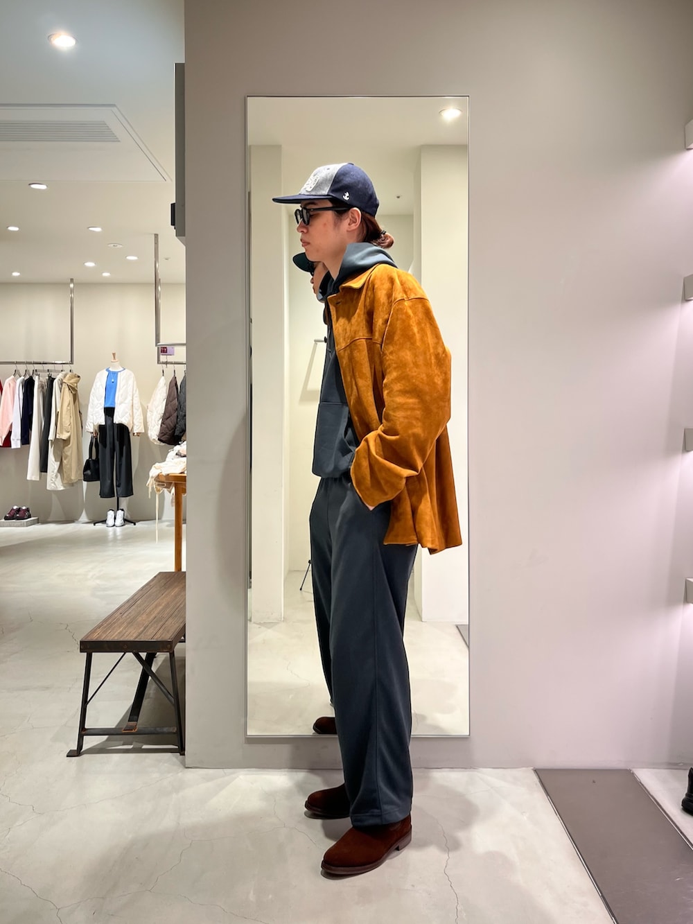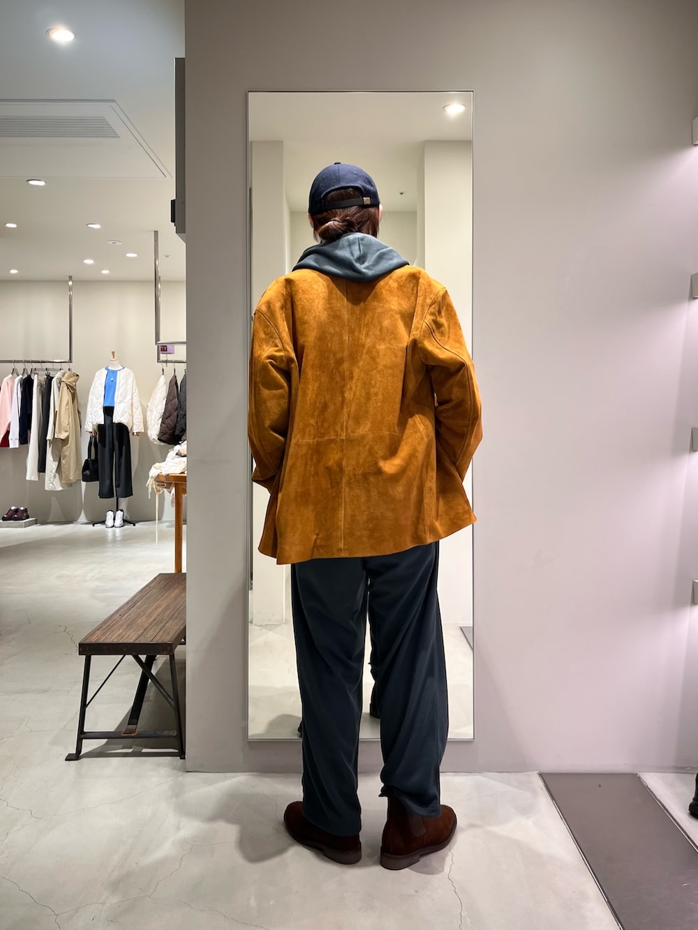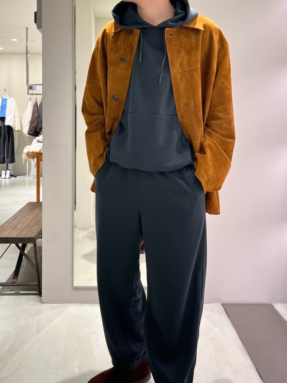 スウェットセットアップスタイルに羽織ジャケットはオリジナルのスエードコート‼️