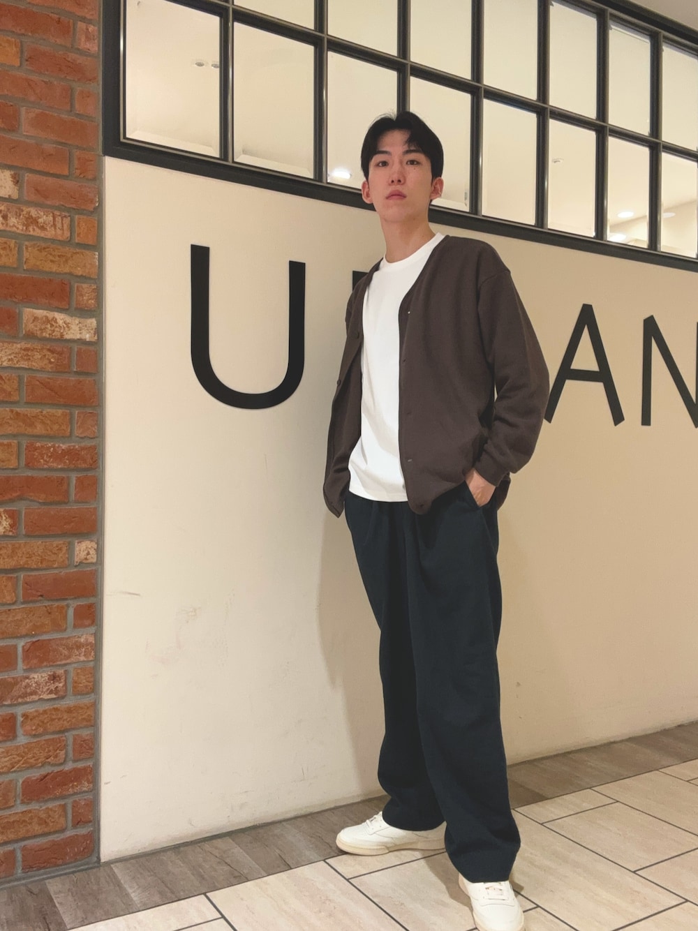 カーディガンと白スニーカーで合わせた秋先取りの甘めコーデ🍂