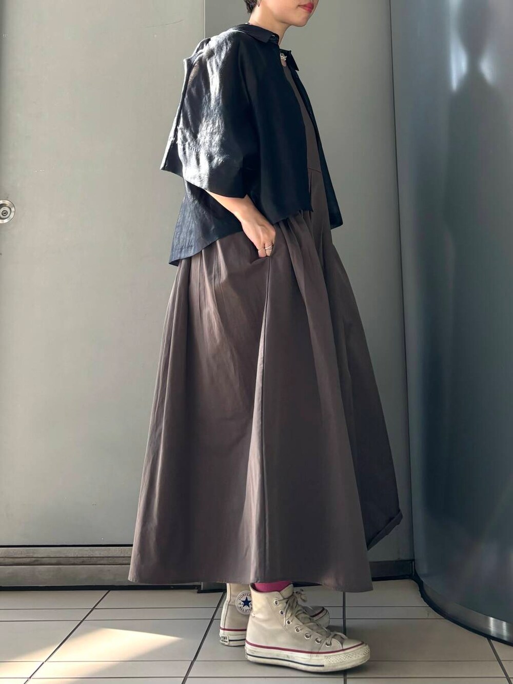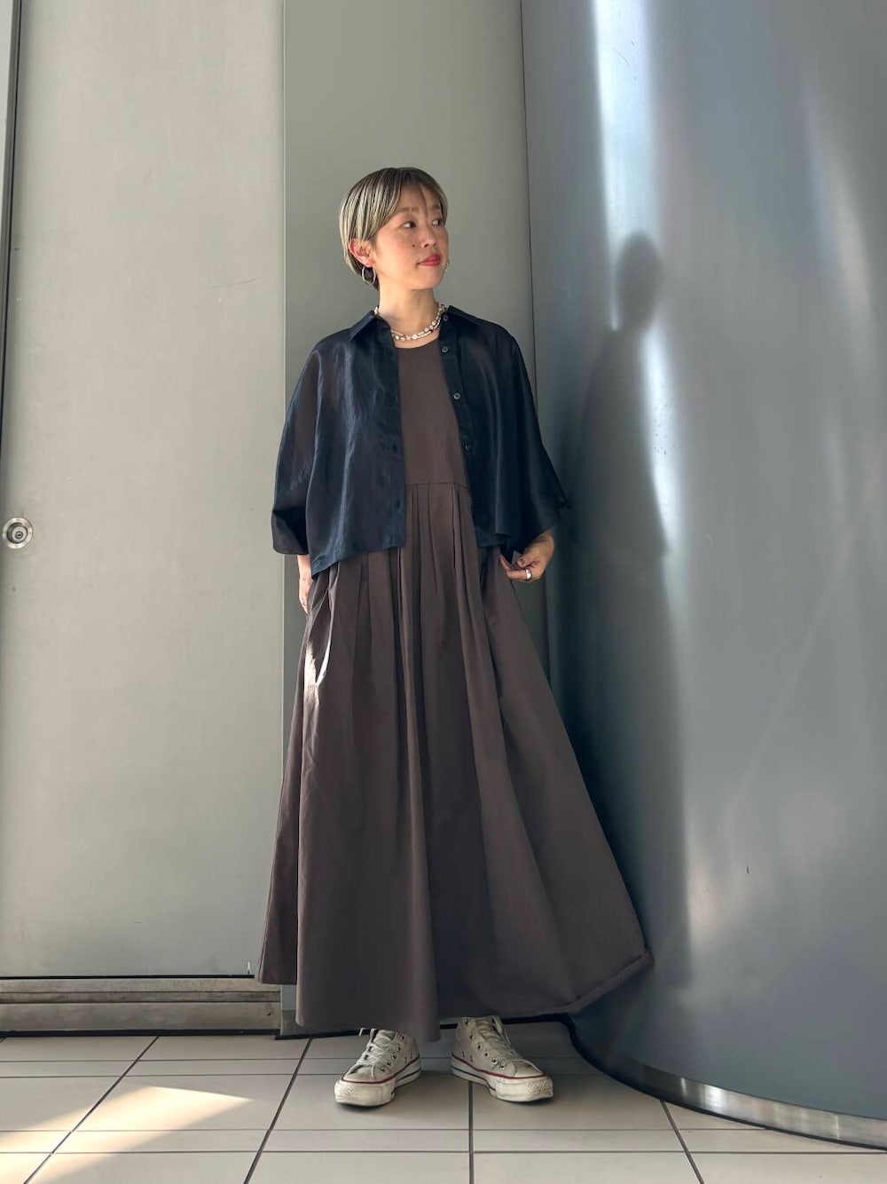 羽織としても使えるので今回はキャミワンピースと合わせてみました。