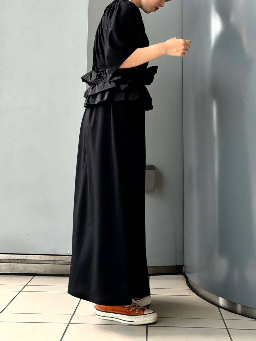 下にカットソーや薄手のニットを合わせたり、ボトムを合わせても◎