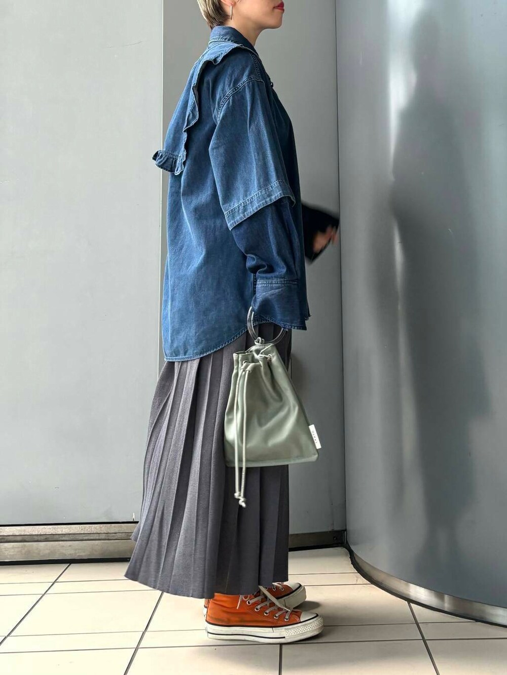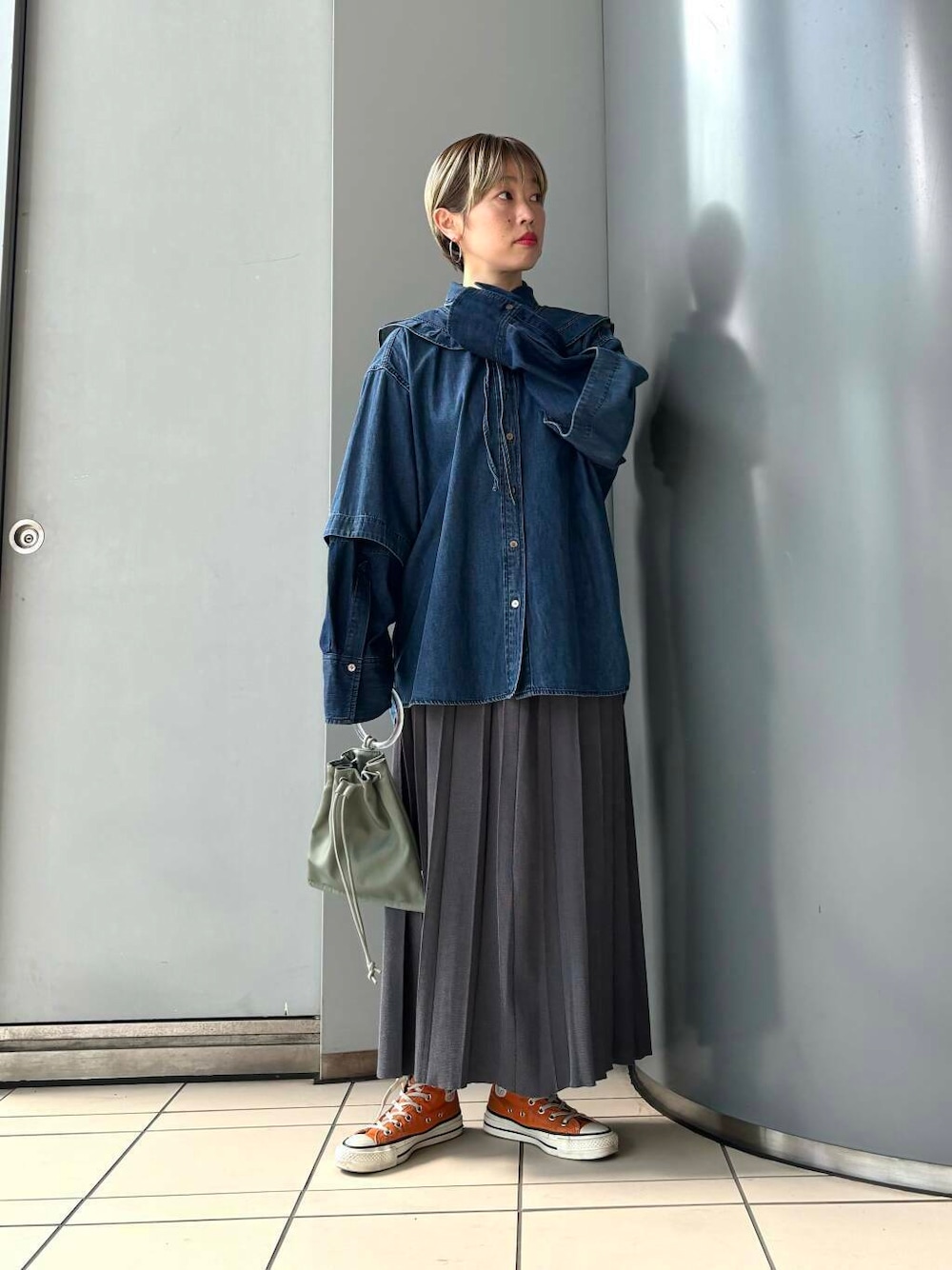 私の身長(158cm)だとマキシほどの長さはなく、ブーツの合わせや下にボトムを履くレイヤードも楽しめそうです。