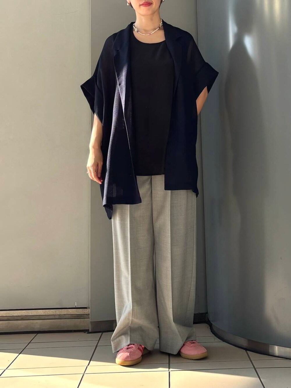 キレイめにも使えるテーラードジャケットもメッシュ素材なので、カジュアルなアイテムとも相性が良いです。