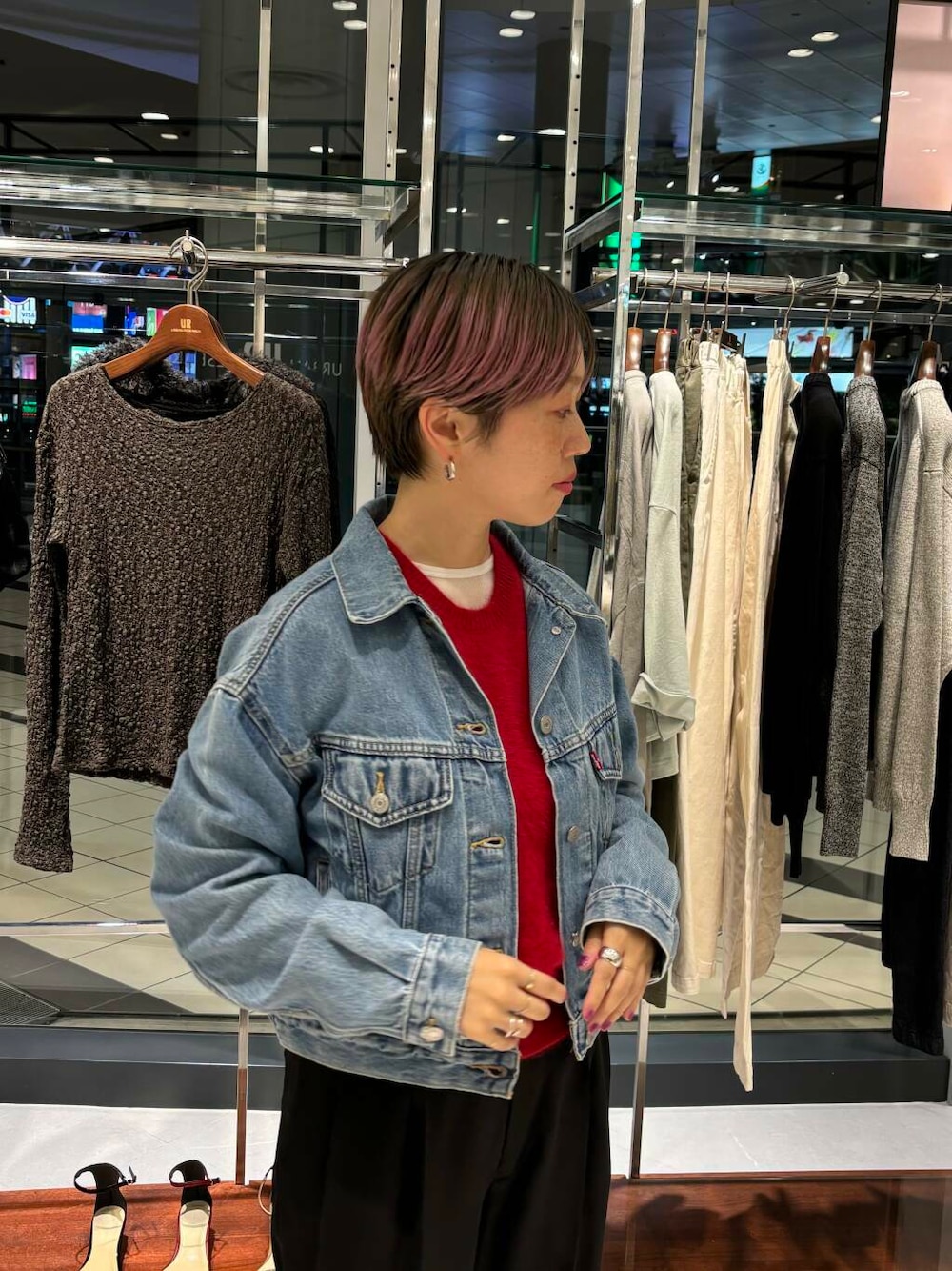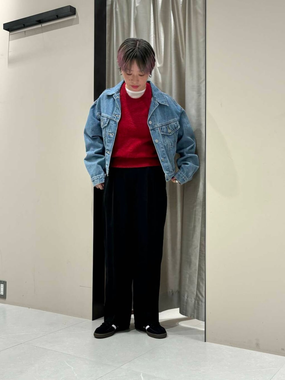 コンパクトなサイズ感なので、ボトムスも選びやすくワイドパンツもフレアスカートもバランス良く着ていただけます。