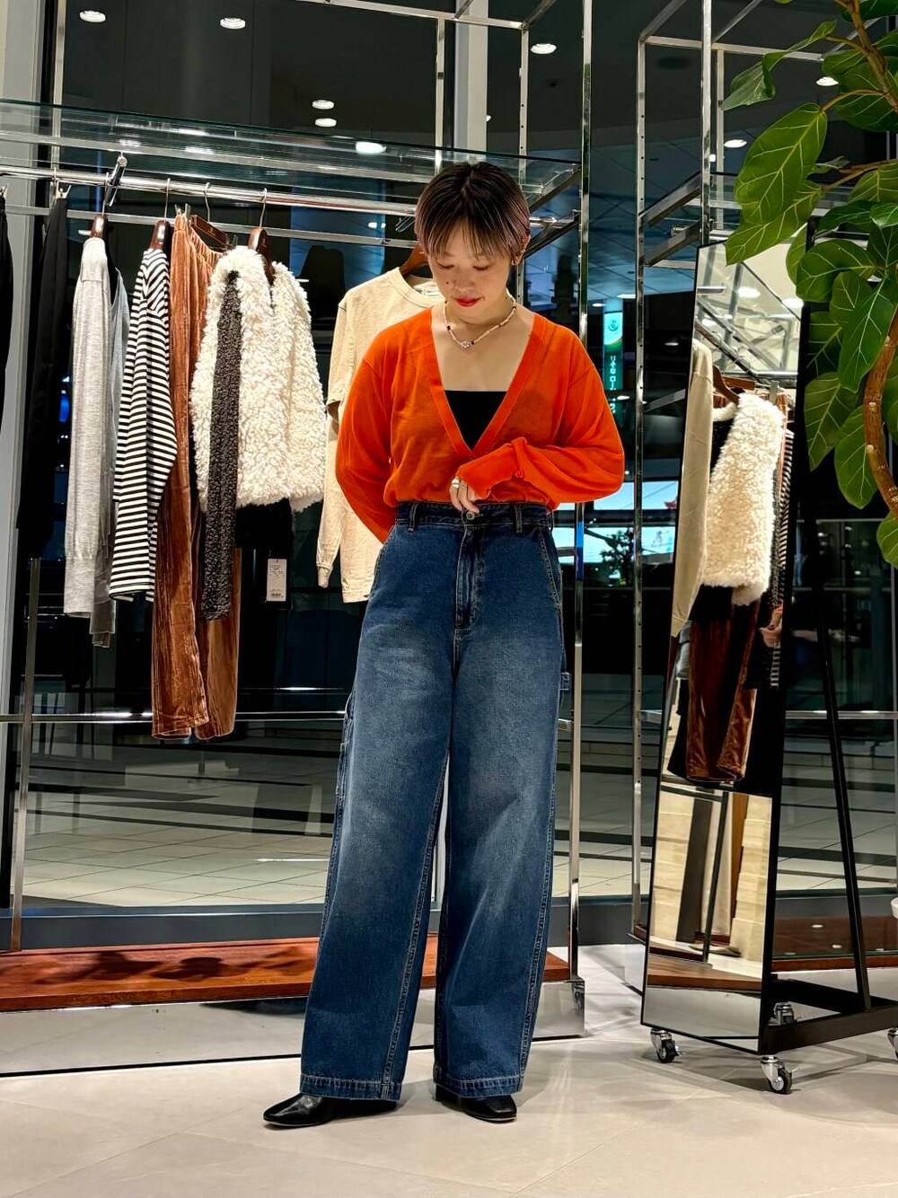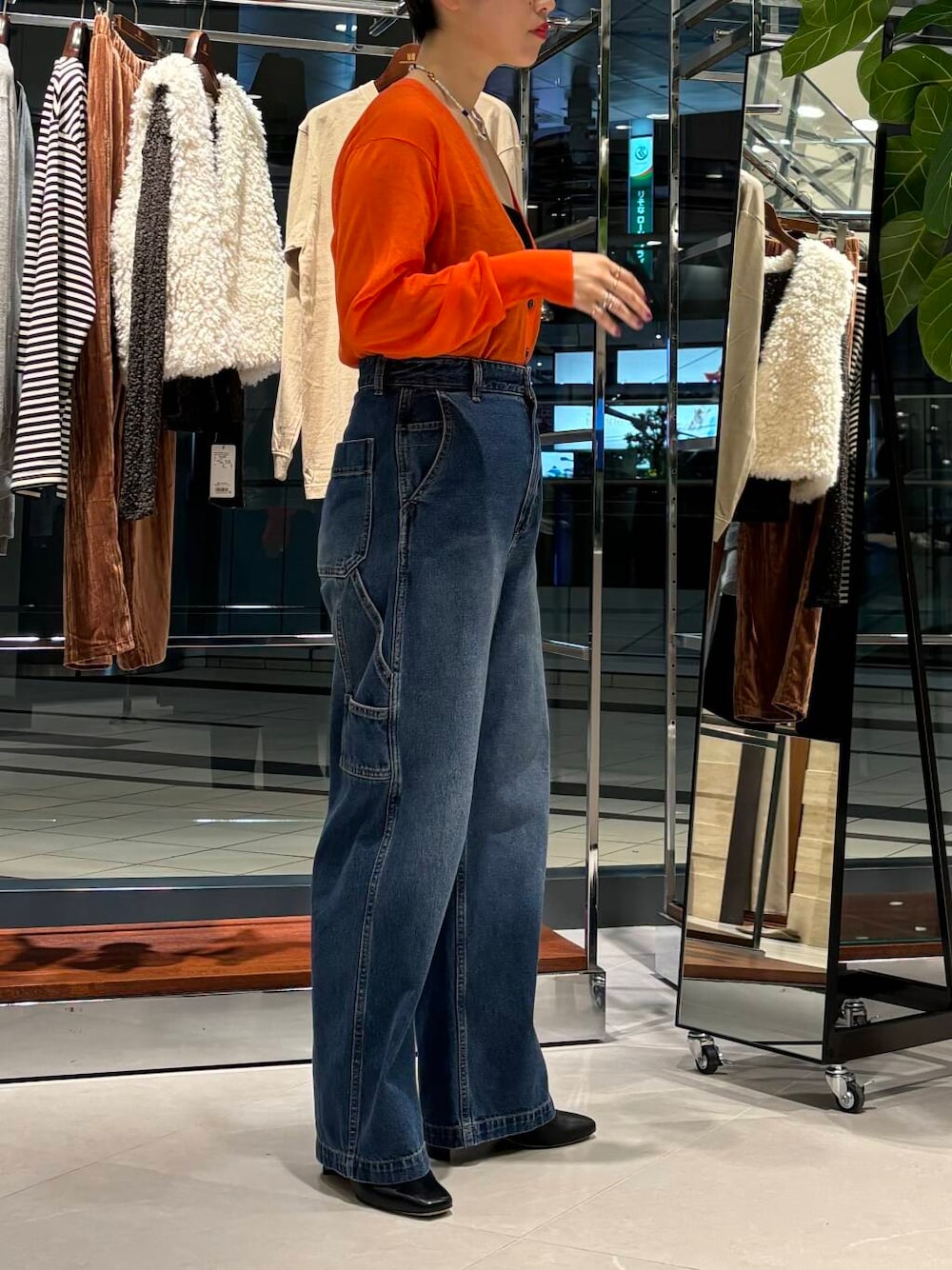 深めのVネックなので、羽織りで着てもフロントがすっきりと開きます。