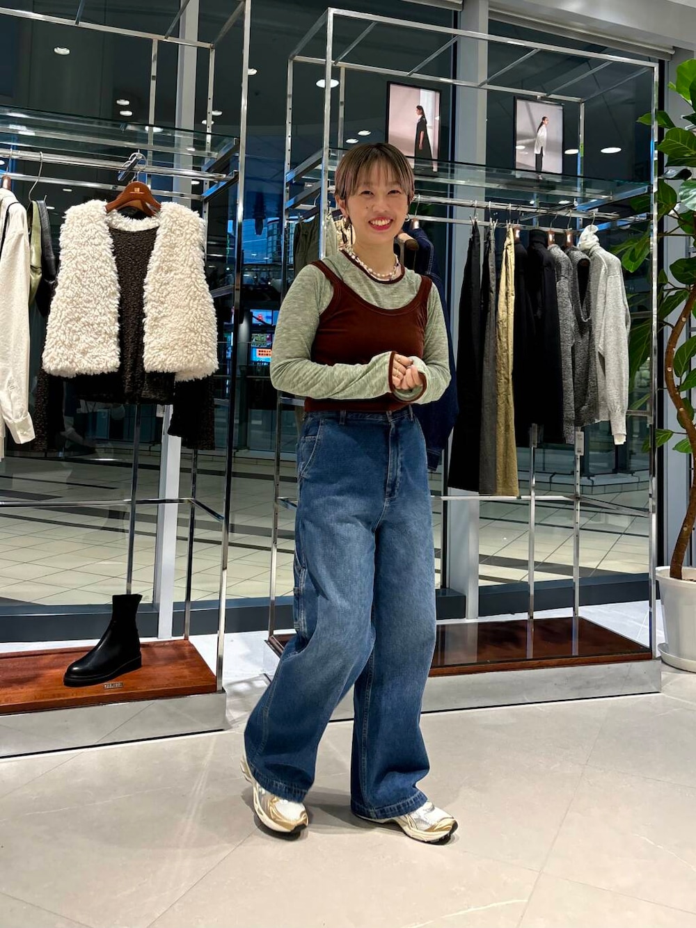 オーバーサイズですが、薄手なのでレイヤードスタイルにも便利です。