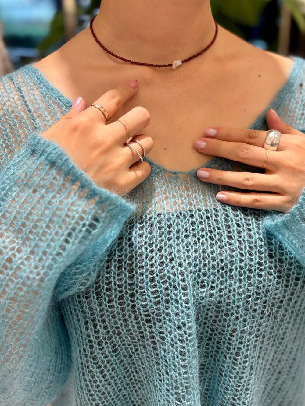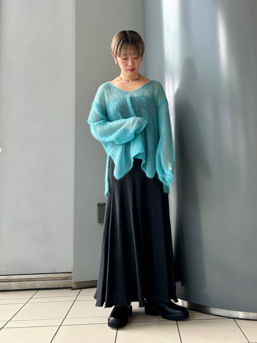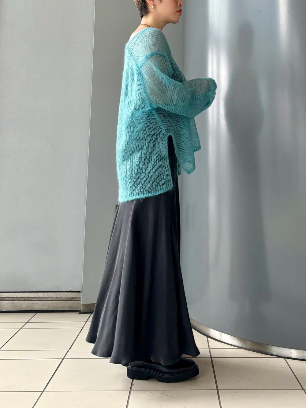 シアー感もルーズなシルエットもかわいいフェミニンな要素満載のニットです🐬