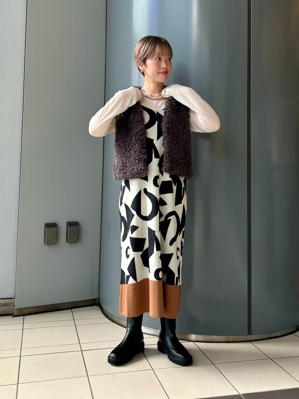 下にパンツを合わせてのレイヤードスタイルもおすすめです。