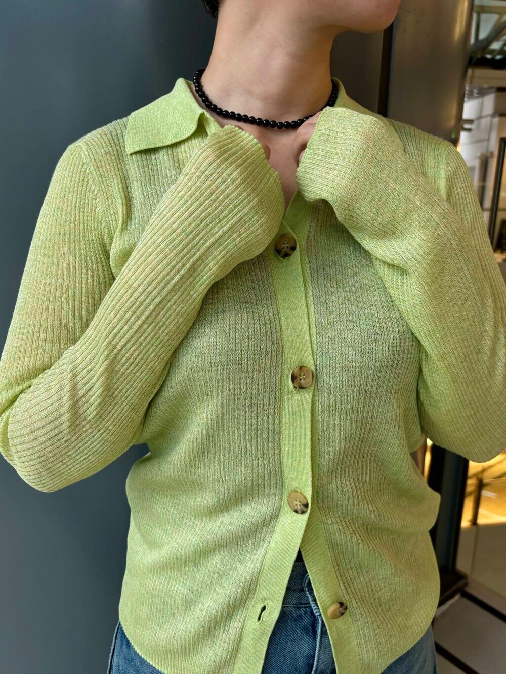 薄手のハイゲージニットは季節の切り替え時期に便利です。少し丈は長いので、インして着たりカーディガンとして使っても可愛いです。