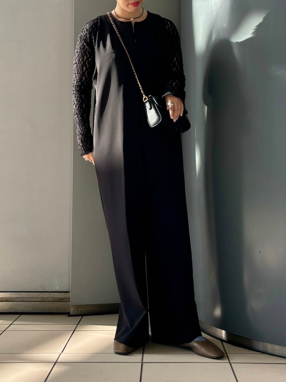 私の身長(158cm)でもフラットシューズで合わせられる丈感です。