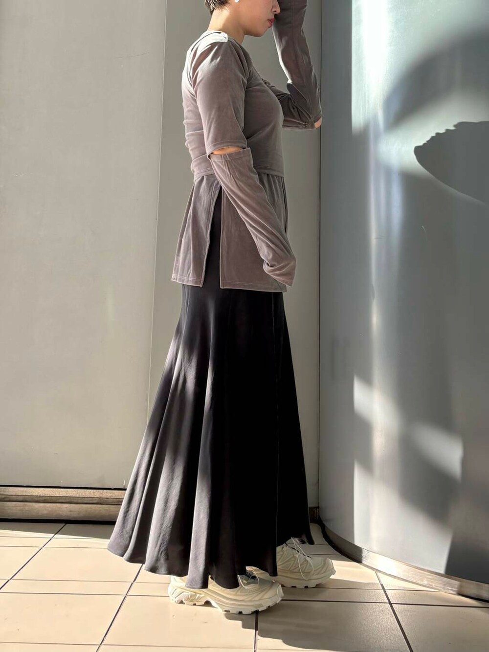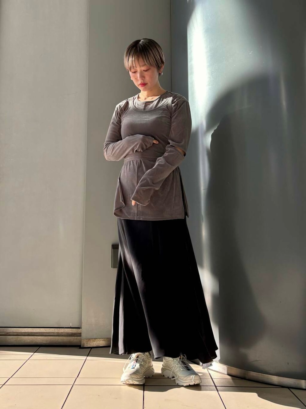 ベロア×レイヤードでトレンド感のある着こなしができます🐘肌見せもちょうどよくできるトップスです。